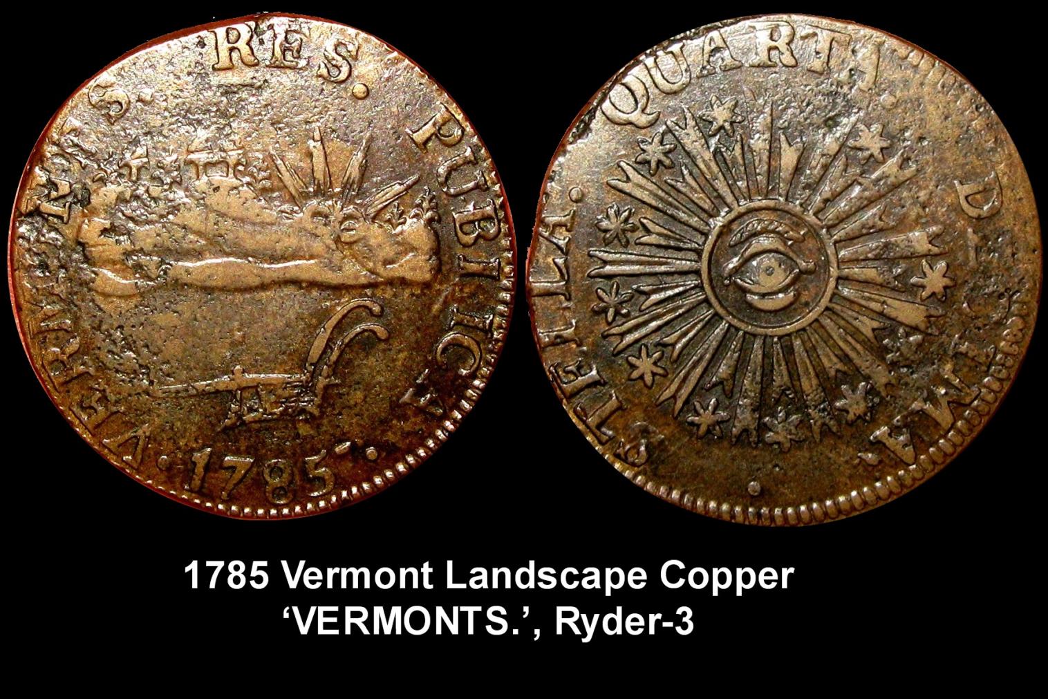 I agree, the Vermont Landscape motif is certainly an appealing one. Here is my example of the Ryder-8 variety with VERMONTENSIUM. It is a bit darker in-hand than shown in the picture. Most Vermont planchets suffer from surface imperfections is seems, and this one is no exception, but it is still a nice specimen. Eduard
