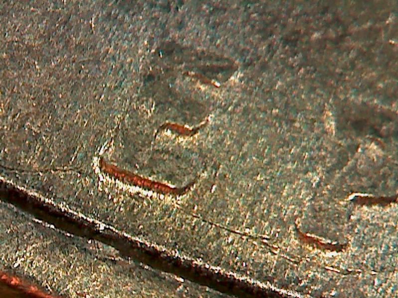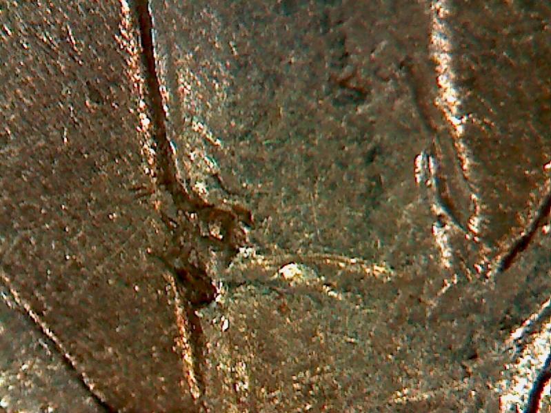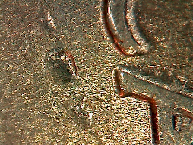 Do y'all think this is PMD? There are 2 areas on the tree to the left that I took close-up pics of. One looks like a gouge and one is raised (like an extra limb). There is a set of 3 ?die chips/gas bubbles? under the CA in America on the obverse. There is also one between the E and R in Quarter (pic in next post). I also noticed a minor ?die crack? under E Pluribus (pic in next post). I couldn't find any listed errors so I'm thinking PMD but wanted another eye or two on it before tossing it back in the bunch.