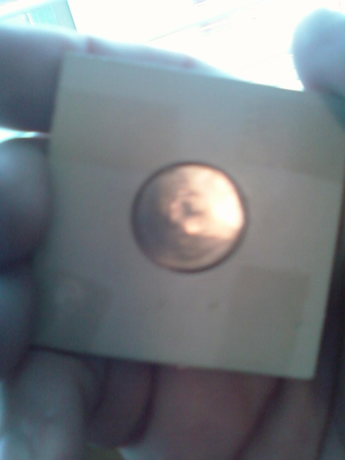 heres the other pics i took yeaterday, you should beable to see the outside rim of a penny..when you enlarge the pics it nothing but a blurr, but i will get better pics. dime size with penny rim and penny markings..