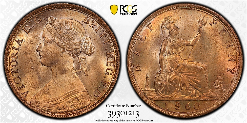 1860 Half Penny. MS65 Red