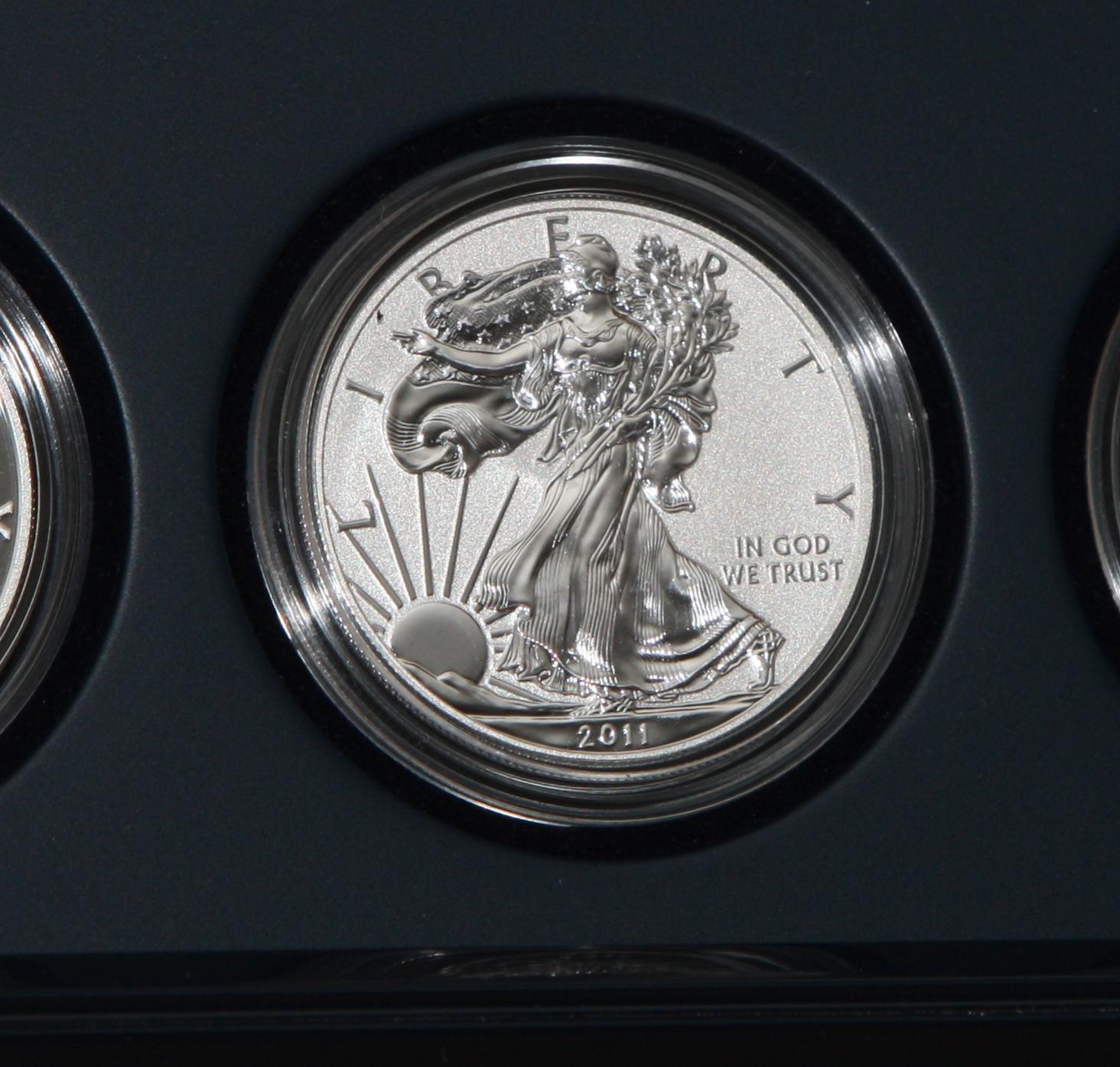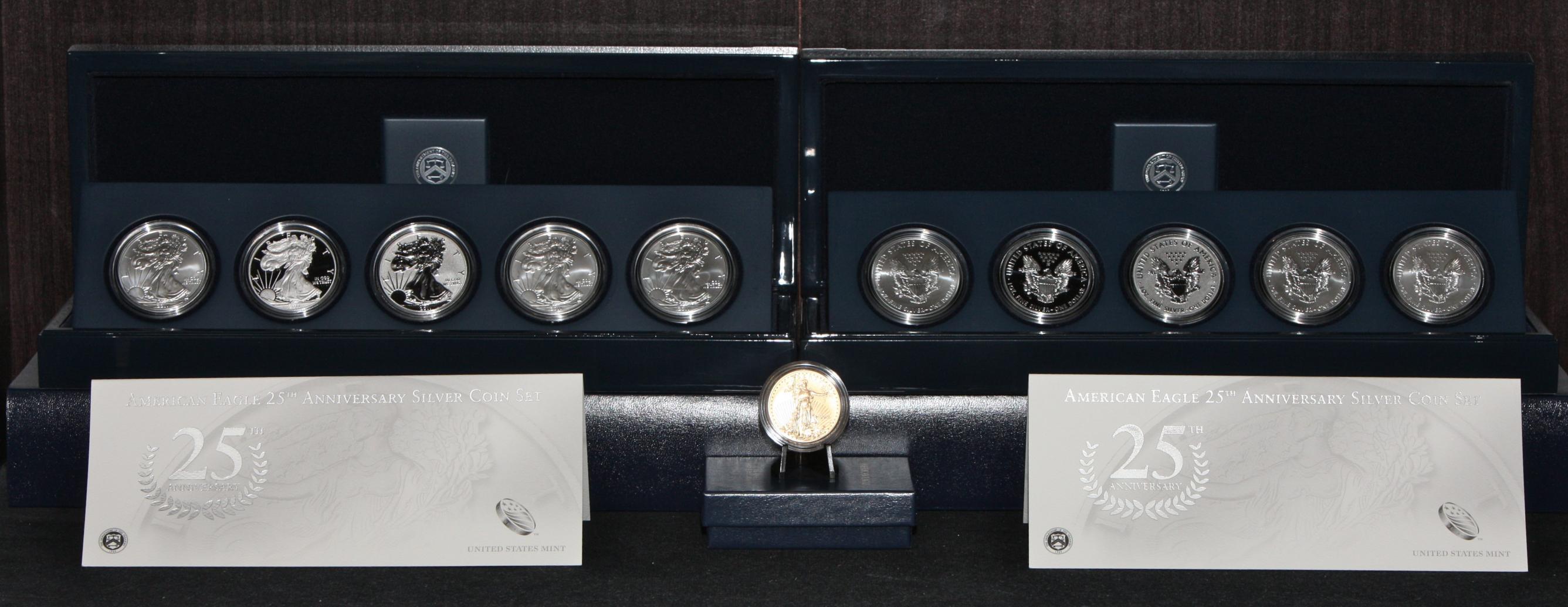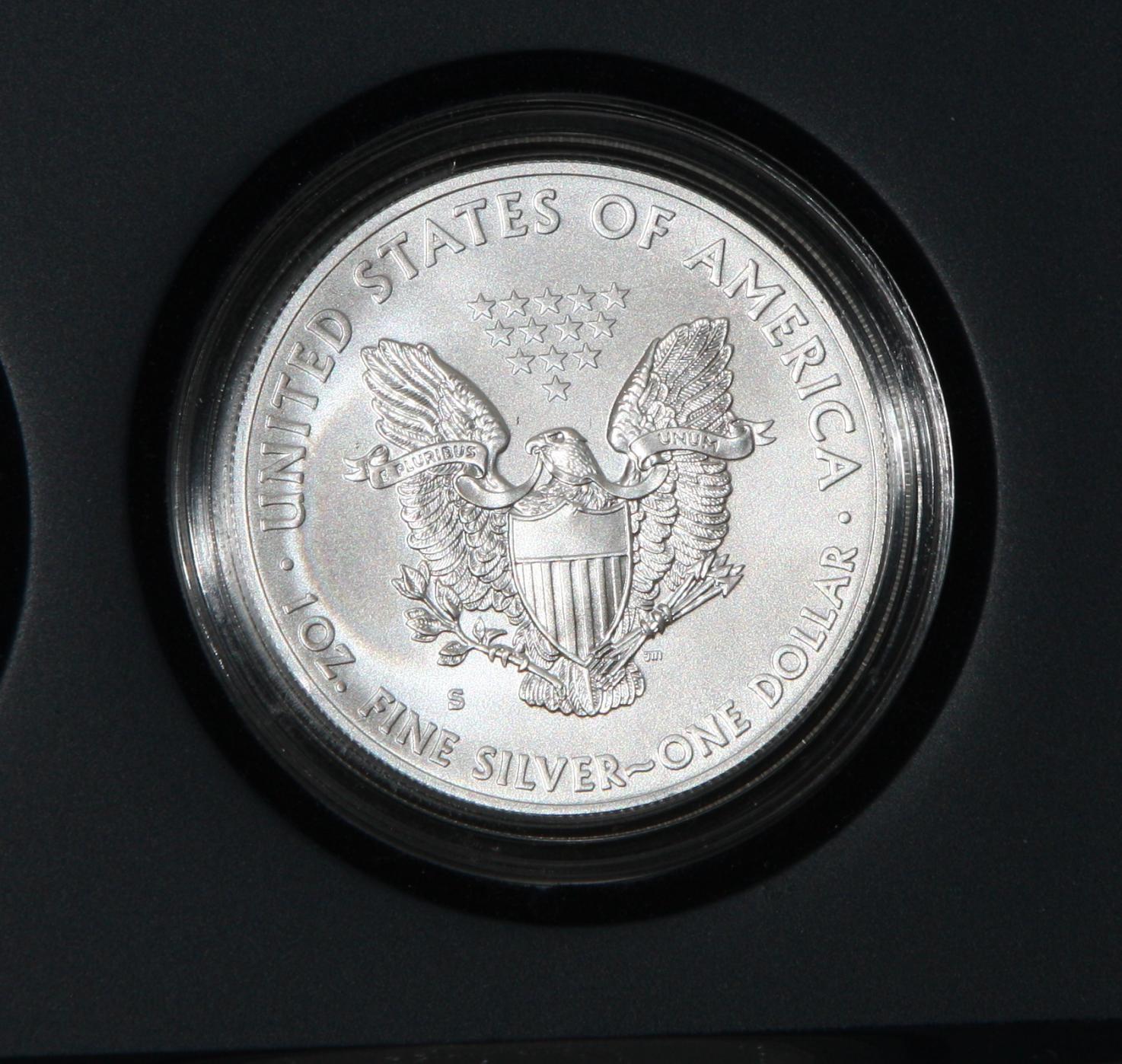 Received my 5 sets today, opened the box and did a cursory inspection of all coins by eye, looking for obvious flaws, happy to say none found. As was mentioned before, in every set most of the coins were out of their slots. The last set opened was a heart stopper, as the capsule for the reverse proof, although tightly pushed together, was empty. I did find it in the bottom of the case and inspected it with a 5x and found no damage, except there are little fibers all over it from the case. Any suggestions how to remove the fibers? Also, one of the slip covers has some goo on it from a sticker. Any suggestions how to get the goo off without damaging the finish on the cover?