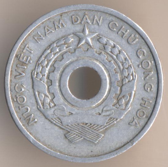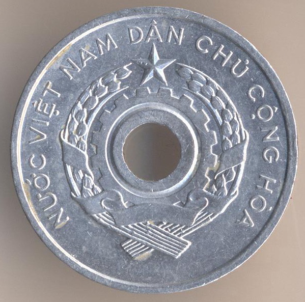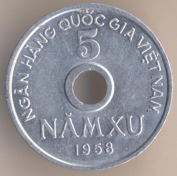 Democratic Republic of Viet Nam. 5 xu 1958, aluminium, weight - 1,6 g., size - 24 mm, thickness - 1,7 mm, mintage - unknown. The single release only.