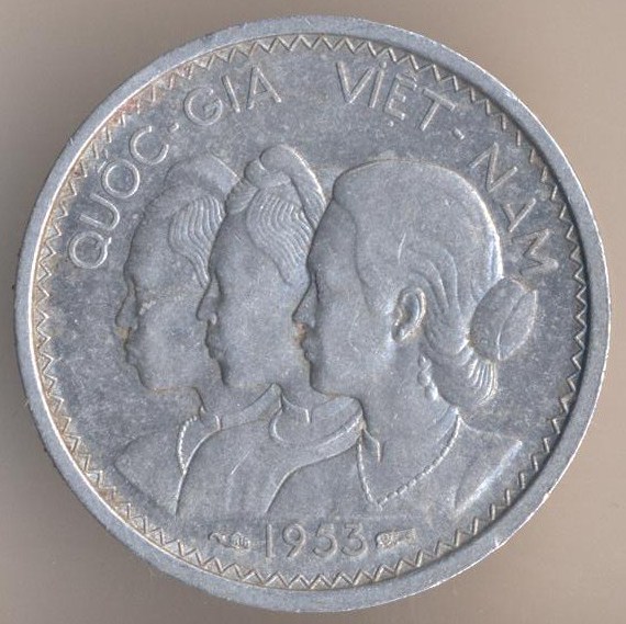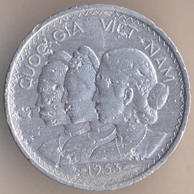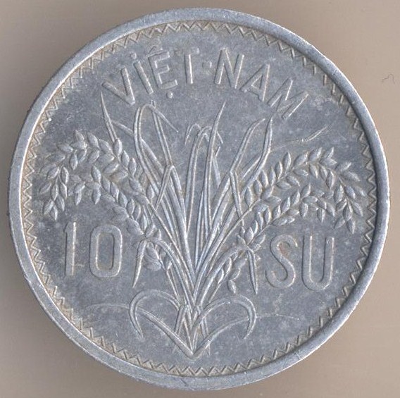 State of Viet Nam (the French puppet state). 10 su 1953, aluminium, weight - 1,3 g., size - 23 mm, mintage - 20000000 pcs. Engraver: Lucien Georges Bazor. The single release only.