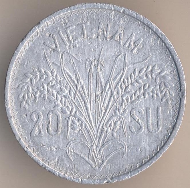 State of Viet Nam (the French puppet state). 20 su 1953, aluminium, weight - 2,2 g., size - 27 mm, mintage - 15000000 pcs. Engraver: Lucien Georges Bazor. The single release only.