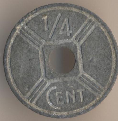 Vichy Regime. 1/4 centime 1942, zinc, weight - 2,4 g., size - 20 mm, mintage - 221800000 pcs. Such coins were released at 1942-44. A coins with the date "1944" are rather expensive in the high grade (from VF to Unc) - about $ 150 and more.