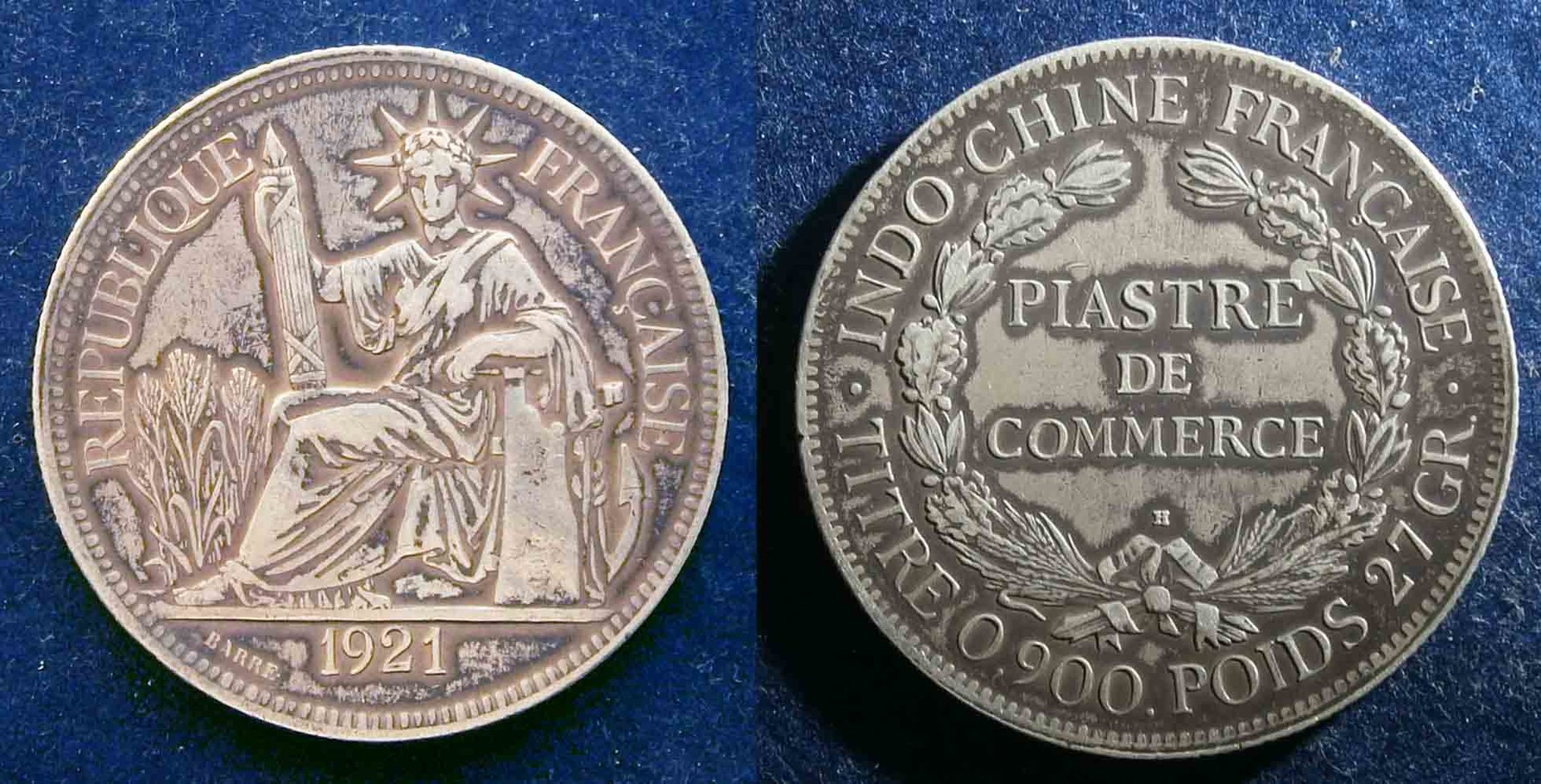 And here are a few from French Indochina, first and foremost a "Piastre de Commerce" (French trade dollar) from 1921 FRPiastreCom1921H.jpg