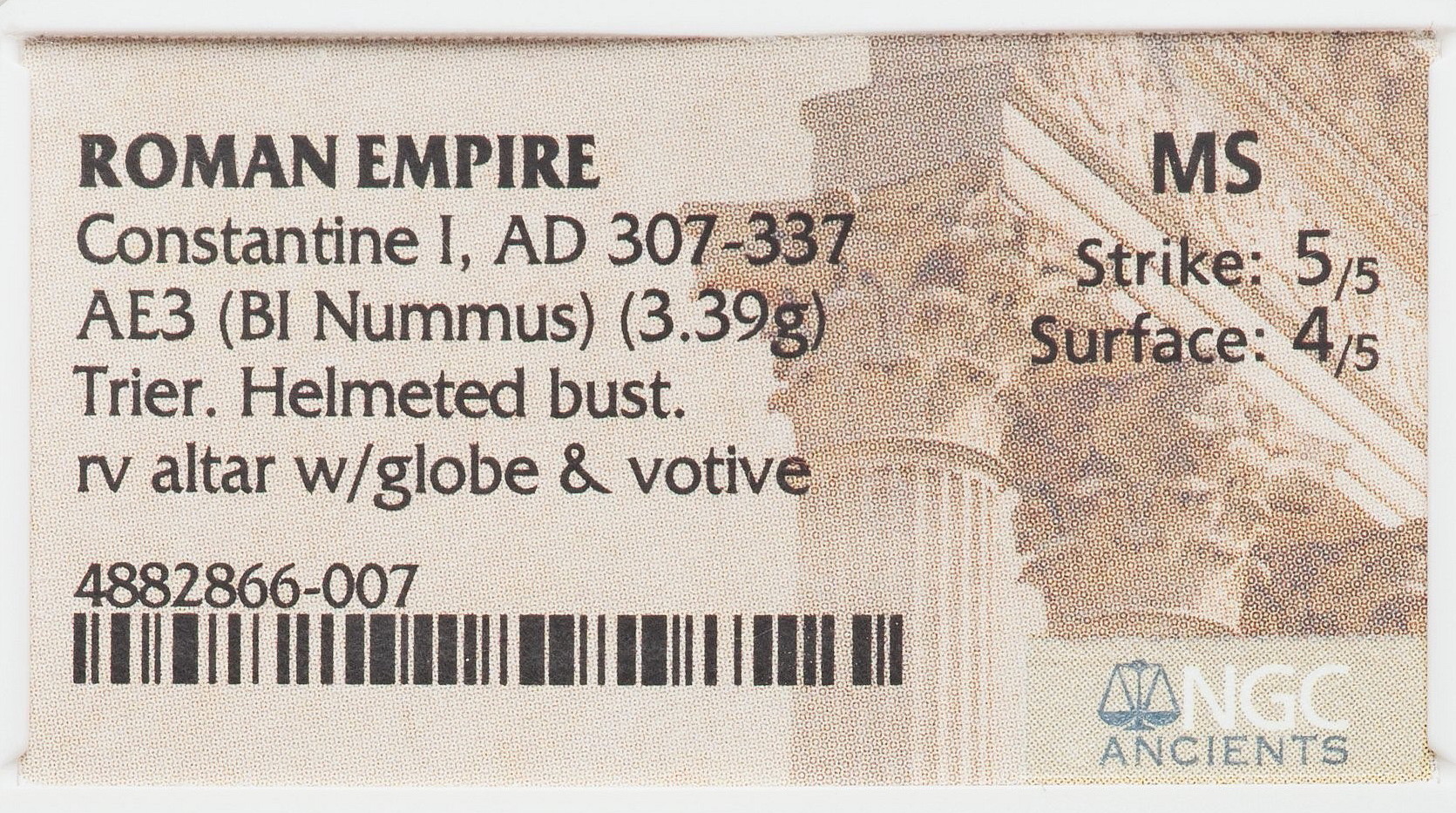 Come on all, let’s not take opinions and comments personal and make this into an acrimonious thread. There is plenty of room for friendly discussion on slabs. I overpay as much as not and I don’t feel bad about it either! I don’t intend to sell my coins so their resale value is meaningless to me. Sometimes I will research a coin target to the point that not winning it is extra hard to stomach. Those are the ones I end up overpaying for. Every once in a while I scoop up a deal. I love the deals and the overpriced coins all the same. Here is a coin I overpaid for big-time. Bought at a shop in the old town of Jerusalem in 2016. Every time I look at it I’m still glad I bought it. Roman Empire Constantine II as Caesar (AD 317 - 337) AE Follis, Siscia mint, struck ca. AD 330 - 333 Obv.: CONSTANTINVS IVN NOB C. Laureate, cuirassed bust right. Rev.: GLOR-IA EXERC-ITVS. Two soldiers standing, facing each other with spear in outer hand, inner hand on shield resting on ground; two standards between. Ref.: RIC VII 220 (Siscia) Purchased in Jerusalem, Nov. 2016