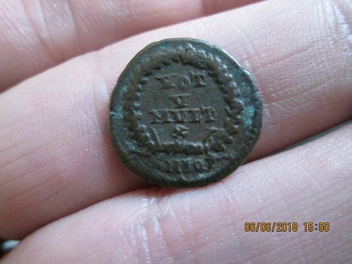 Here are a couple of mine, as bad as these pics are, they are the best I currently have. Constantine I, 320-321 AD O:CONSTANTINVS AVG R: DN CONSTANTINIMAXAVG, VOT X X crescent, TT in ex, RIC VII TICINUM 167, 20 mm, 2.8g Constantine I, 324 AD O: CONSTAN TINVSAVG R: DNCONSTANTINIMAXAVG, VOT XX star, SMHB in ex, RIC VII Heraclea 60, 2.0 g, 20 mm