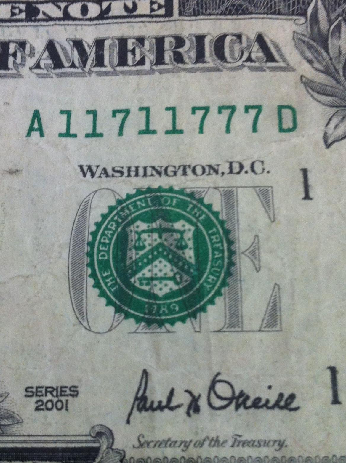 Hey guys! I thought we should start a thread on what WACKY serial numbers you paper currency has !!!!!! My wackiest was SN: 00096000 but my mom accidentally spent it :/ Whats your wackiest SN? ALSO FEEL FREE TO POST PICTURES! ITS ENCOURAGED!