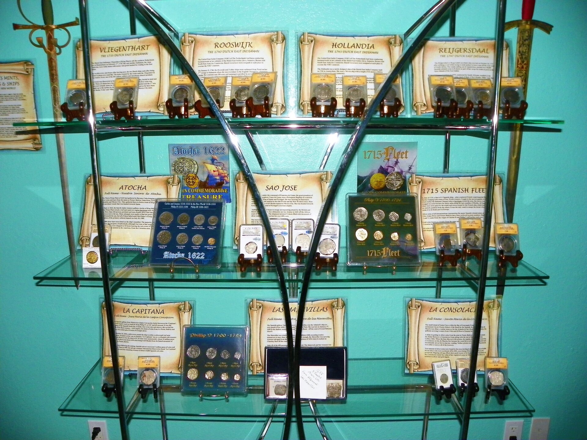 Hello, this is my first try at posting some pics. This is my display of Shipwreck Coins from the Spanish Colonial era. I believe I ordered this glass/metal display from Etsy and had to assemble it. My whole office space wall is painted in Bermuda Bay color and features shipwreck coins and other artifacts. It was very difficult taking pics with so much glass and shiny metal. I hope you all enjoy them. I have more pics if anyone wants me to post them.