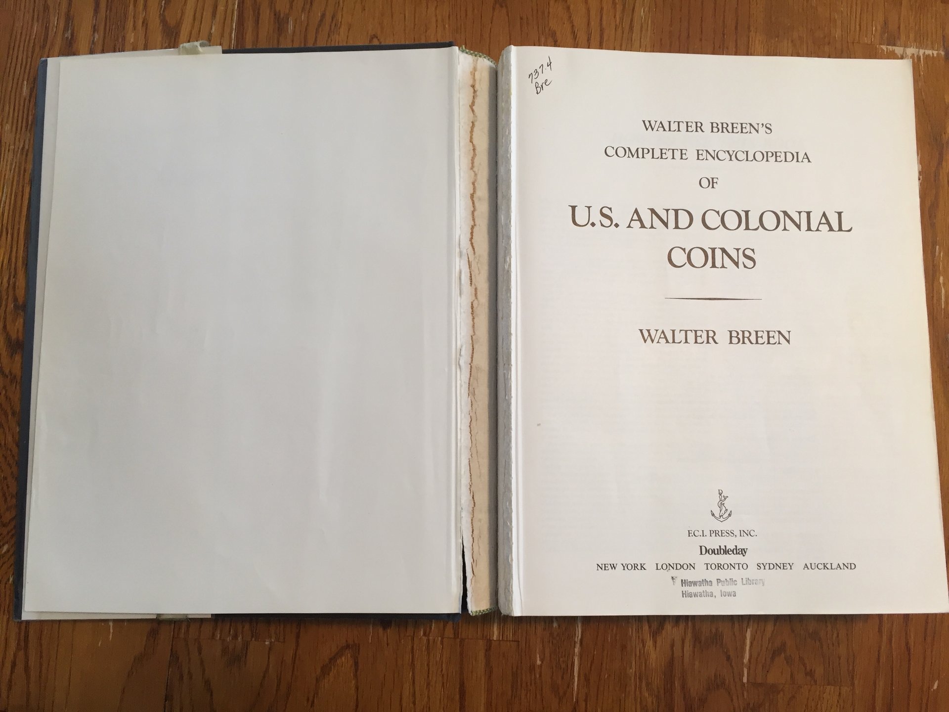 The original and most authoritative encyclopedia on US coins. Typically $150-200 in new condition this work is often out of the hands of many people's coin book libraries. While this ex-library copy is heavily used with pages detached from the spine and a loosened spine- it is all there and still a very readable/usable copy. See pictures for details. $30 shipped medial mail to anywhere continental US. Prefer Paypal F&F.