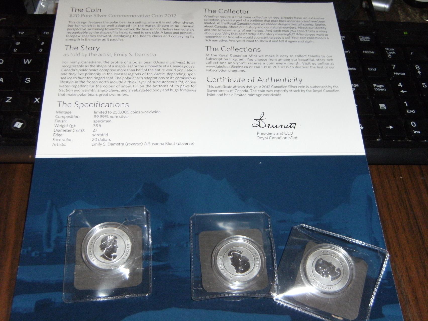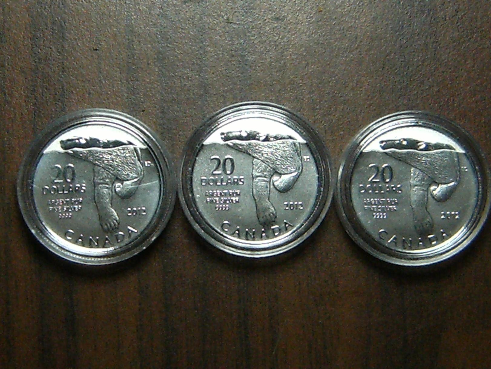 SOLD Want to trade 3 Canadian $20 for $20 Silver Polar Bear Coins