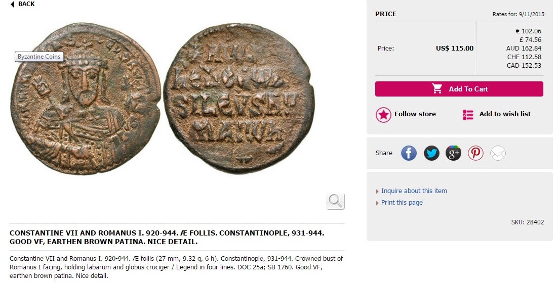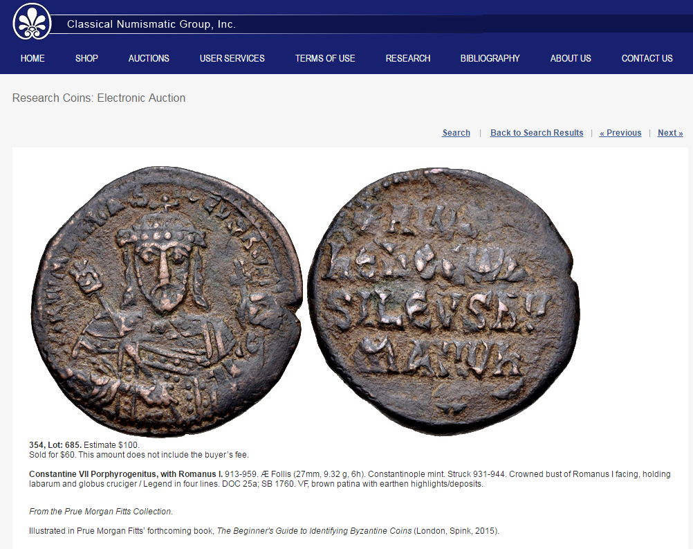 This coin worries me. The CNG listing says it is a plate coin for a book. I wonder what it illustrates. I would expect someone to be able to find a better looking coin for an ordinary plate so I'd check if it has a secret I am missing. The VCoin listing is no surprise since many dealers there build in plenty of space for maneuvering but the decision to list the coin on eBay without a higher start might have been an educational experience. I recall a dealer griping to me that I won a coin from him on eBay for less than he paid in postage. Guess why I bid. As it is, $23 seems OK but we need to find out why CNG though it was worthy of a single listing. I'd suggest finding a copy of the book and seeing if it sheds any light on the matter. Is it worth $35? https://spinkbooks.com/product.php?xProd=538&xSec=47