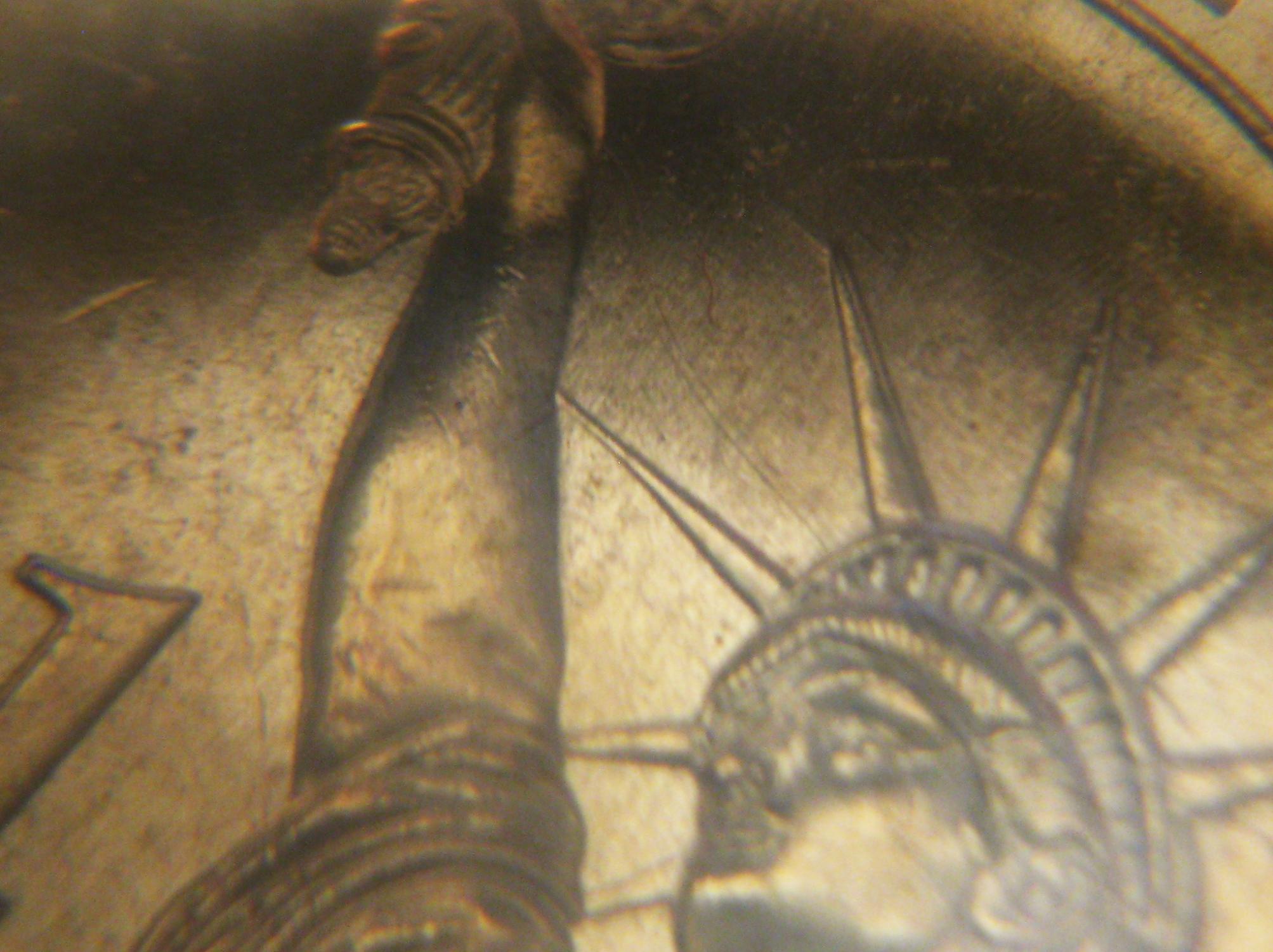 I joined in 2006 but forgot all my info and couldn't recover it...I am talking about the 3rd ray from the bottom (coming out of her forehead). No other of the same rays on different coins come close to reaching the arm.