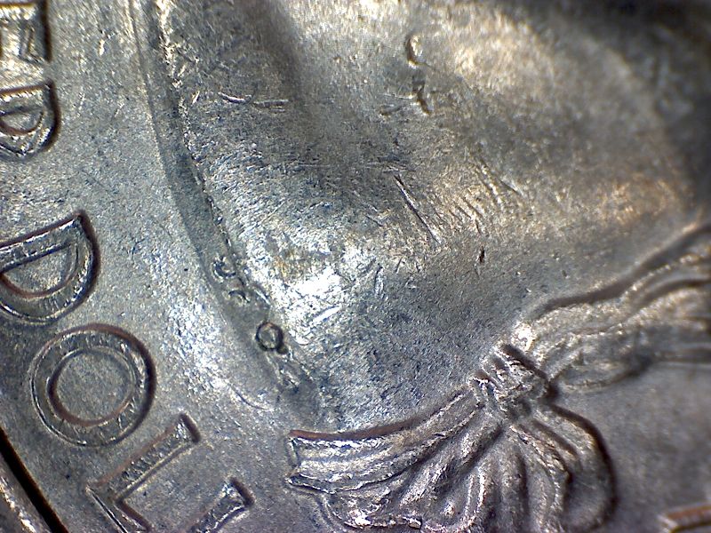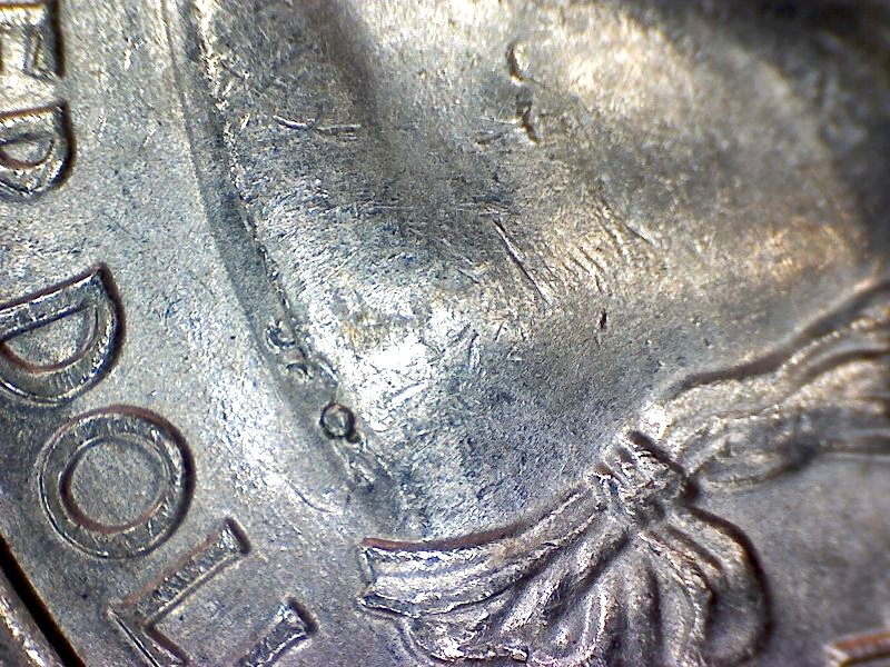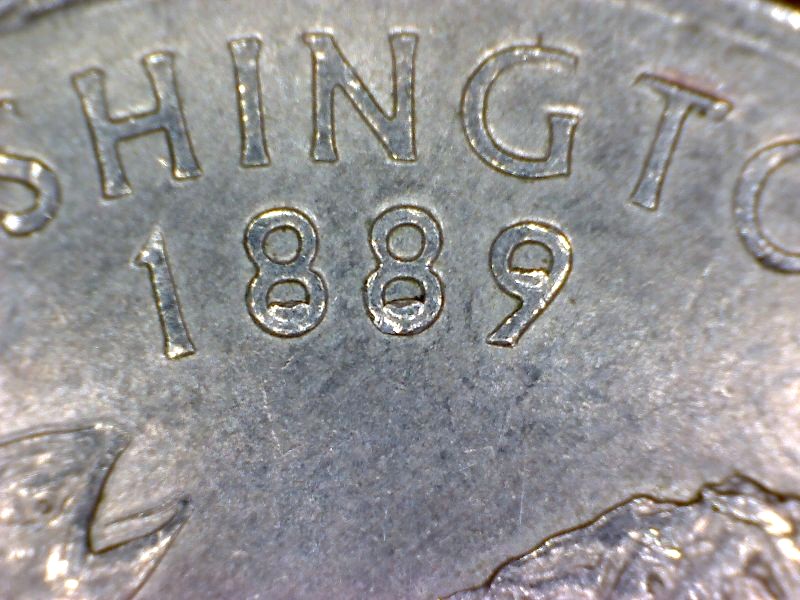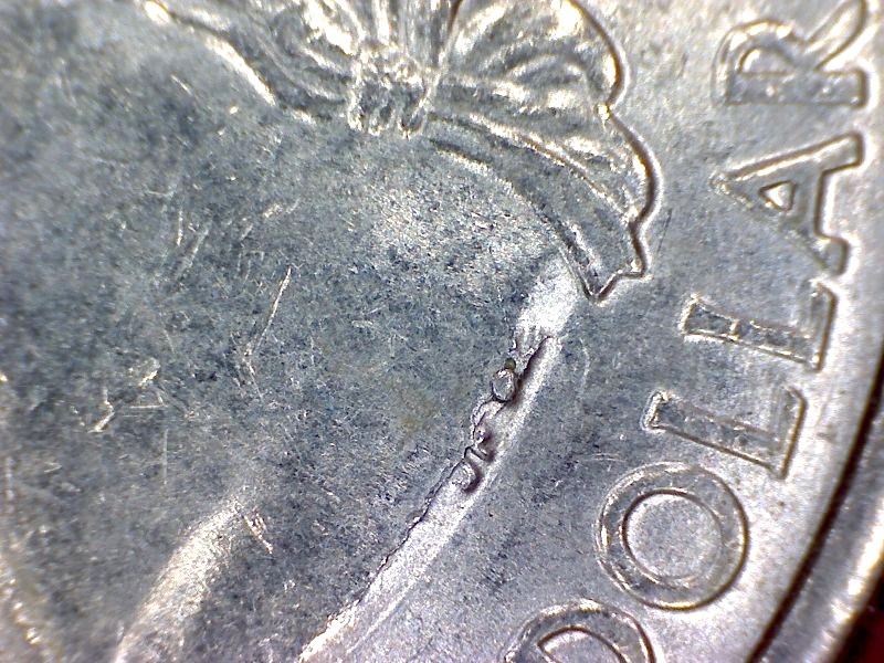 Six different die breaks. Three obverse, filled top of R, thin string along lower neck and intials on lower neck. Three reverse, all in 1889. Are die breaks worth hanging onto?