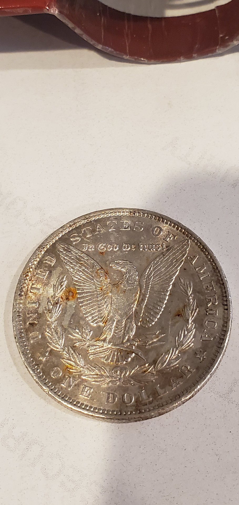 Unless it is a silver covered steel fake, I would not think any more would appear. There really should be no rust on silver dollars unless it was a metal contaminant. Neither silver nor copper has a colored compound like that. IMO. Jim