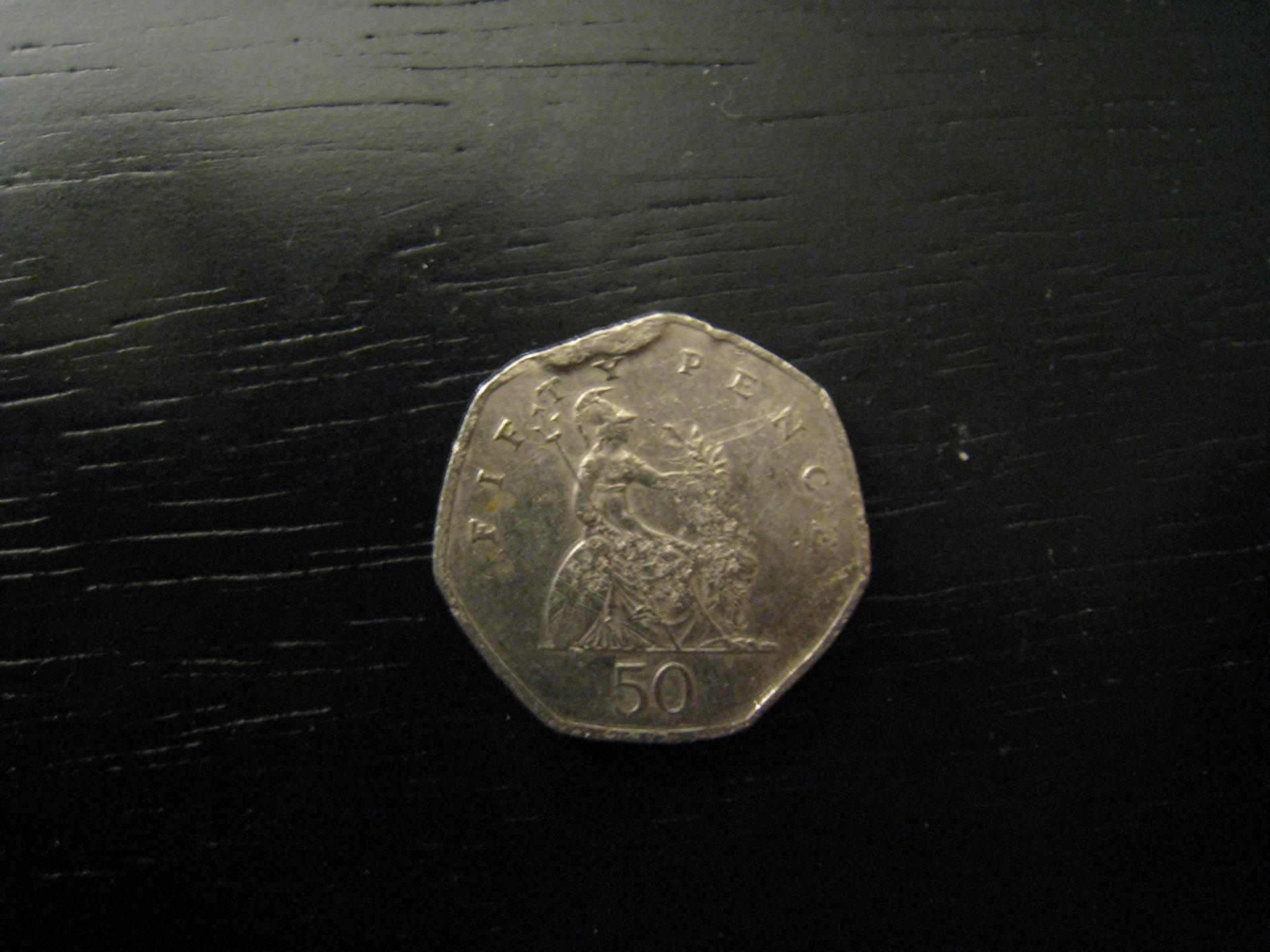 I have this 50p that has this kind of weird smudged edge to it. What could cause something like this? The coin is generally beat up but this doesn't seem like the sort of thing that regular wear would do.
