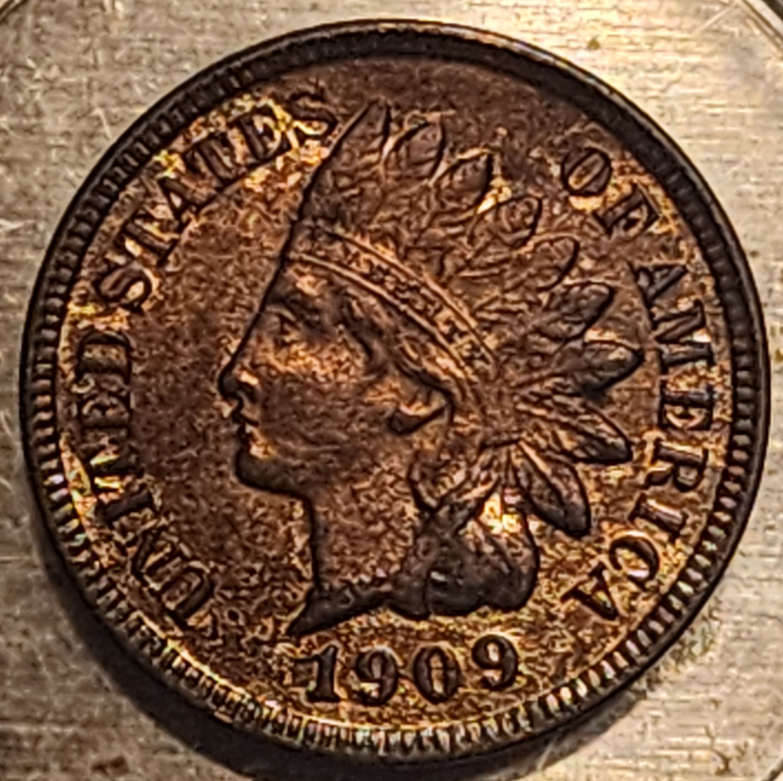 I have had this unusual 1909 indian cent for a while now. It weighs 2.88 grams (under weight tolerance ) and has a really weird look for a cent. I thought at first maybe environmental damage but I have never seen another indian cent in any state look similar to it. It almost looks like some different kind of metal? I tried to see if a magnet will stick to it and it won't. The O.D. is 19.05 mm. I thought maybe counterfeit but this doesn't seem like a coin worth counterfeiting to me. Plus I don't see anything that screams counterfeit on the design other than the finish and weight. Anybody ever see another indian cent with this kind of look to it?