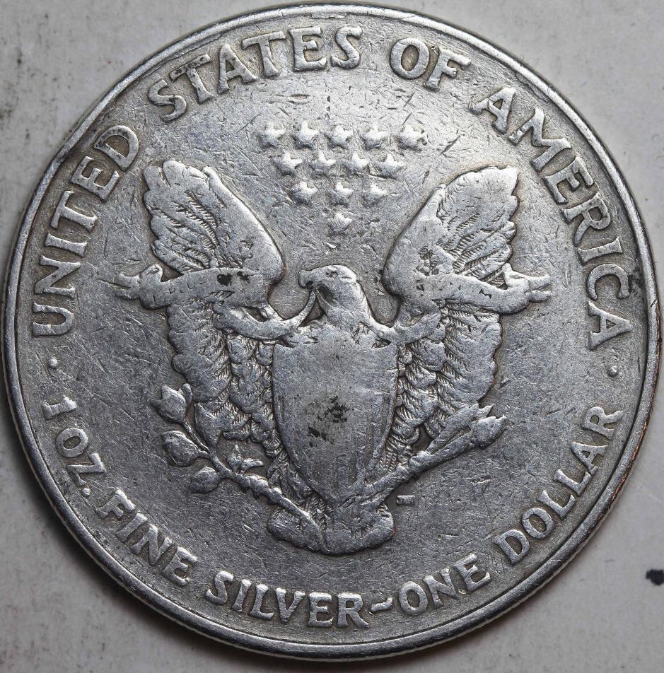 One of my guys bought this today. Looks like someones good luck piece. I'm thinking about submitting it seeing how NGC hasn't graded a silver eagle under AU53. It's really cool looking! & Just in case anyone was curious....