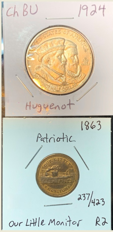 COINgratulations! The “Our Little Monitor” is my favorite CWT type! And presently the only CWT in my slabbed collection- though perhaps not the last. Looks like you got a nice one. There is a CWT in my current giveaway inventory, too. I like those Webster HTTs with the shipwreck on ‘em. Ships on coins are an all around good theme. I have never owned a Huguenot half dollar. Once saw a very well-worn example that a metal detectorist found not far south of here.