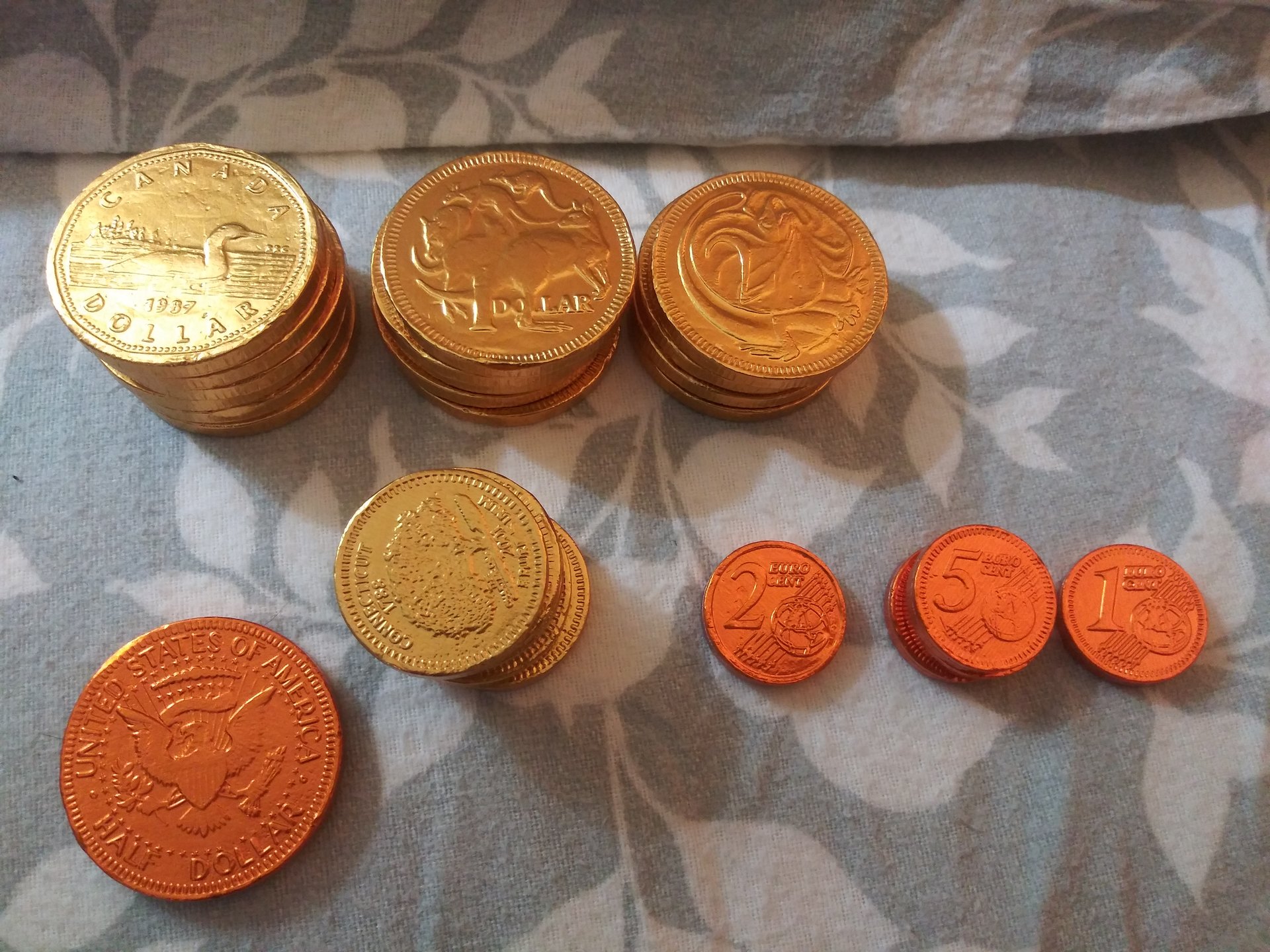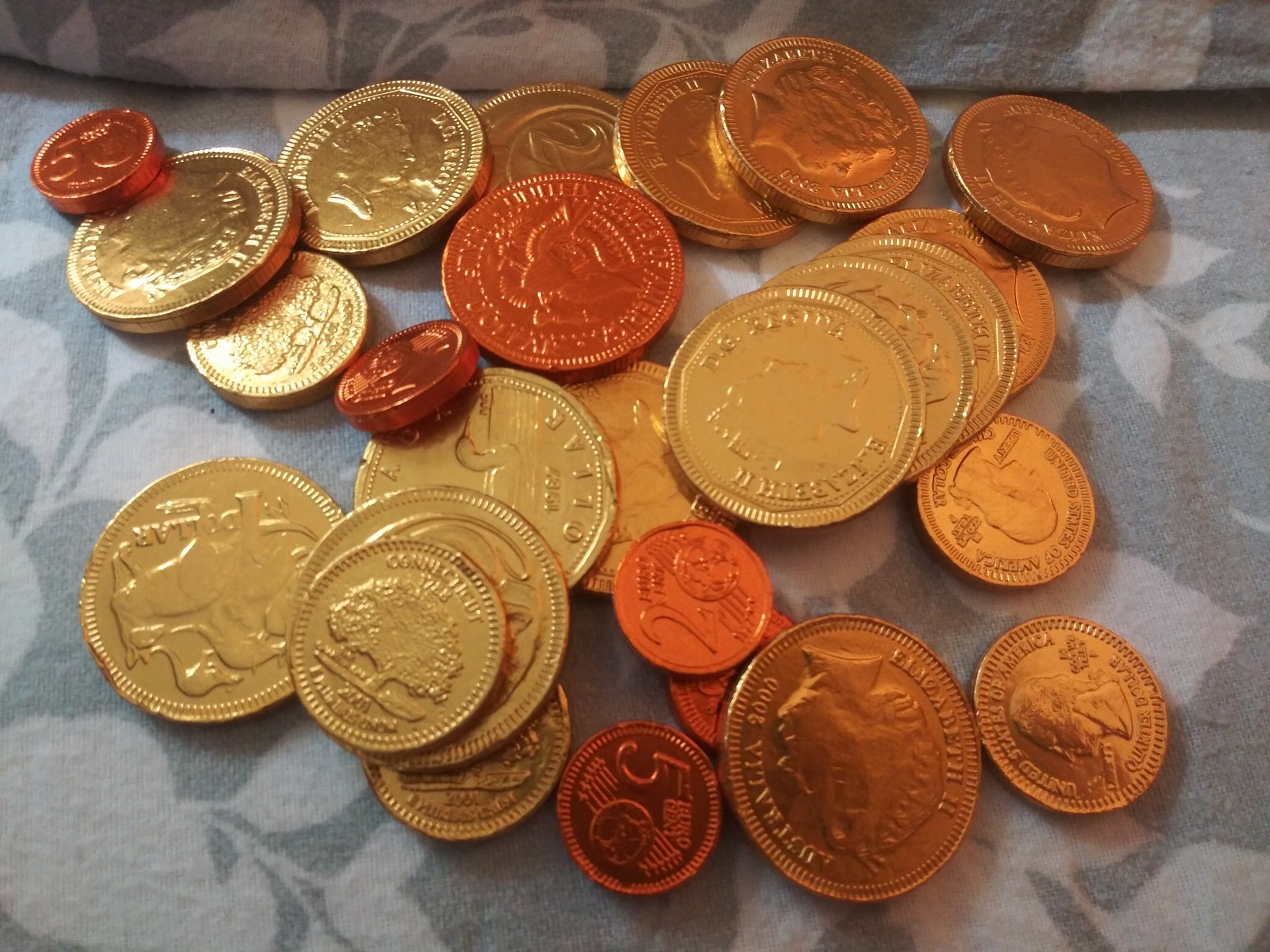 Mine were these chocolate coins. I thought they would be all different coins.. Out of 26 coins there were only 8 different kinds Worst purchase ever!