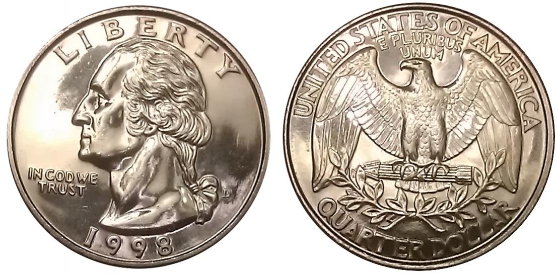 I have recently bought a 1998-D Mint Set with some coins that I think are prooflike (all except for the cent, actually). Problem is, I am not sure how PL is determined/graded. The coin in question could reflect about 4" of newsprint that was readable. Here is a pic of the coin (at an angle because direct pics showed no detail, it just looked black) My math puts me at around 52¢ paid for this coin. (the set was $2)