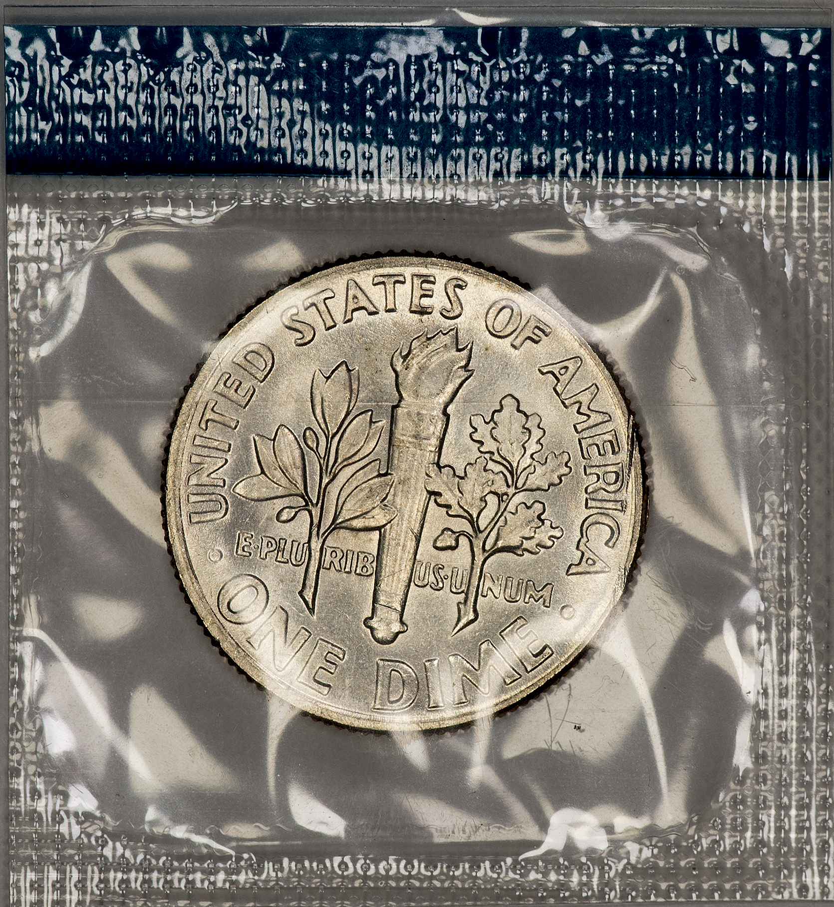 I agree with @Fred Weinberg The spacing between the obverse markings matches the distance between the "pseudo-perforations" of the sealer markings. Here is how it happened likely: 1. At the time of contact with the sealer, the dime was way over to the side where the sealer would normally make contact. 2. Seeing the sealer only made contact with the dime along its outer rim, the pressure caused the dime to skid over (just like how a bar of soap squirts out of your hand) back into its proper "bubble". Thus the contact wasn't made where the dime is shown in the photos; it was along the periphery of the sealer marks, and the skidding explains the "lines" rather than the "circular patterns" seen along the sealed edge of the plastic. 3. As for the marks on the reverse, upon striking just the outer rim of the dime, it caused the dime to raise slightly and was therefore now not sitting perfectly flat as the sealer made contact with it; the dime was tilted a bit. This further explains why the obverse pattern consists of short, linear, longer, and equally-spaced markings. On the reverse side, it likely made contact with the edge of the sealer - not the flat side which would be perforated - which would leave a long, uninterrupted linear indent as seen on the reverse.