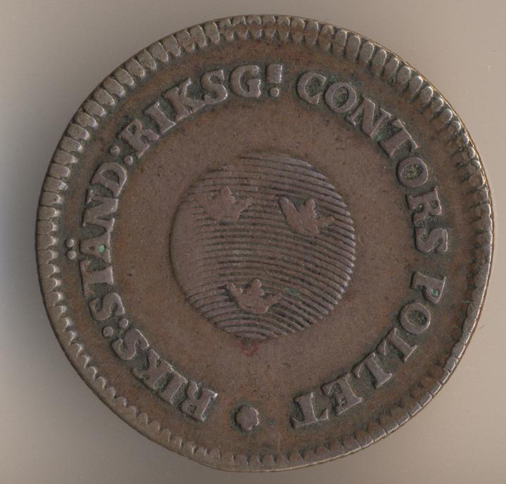 Found with metal detector. Was an encrusted green lump when I found it. I soaked it in oil for a couple days and it did not help. Shoot me, but I had to use the rock tumbler on it. Anything else probably would of ruined the details (like a wire-wheel). Possibly Swedish in origin. Between a quarter and a half in size.