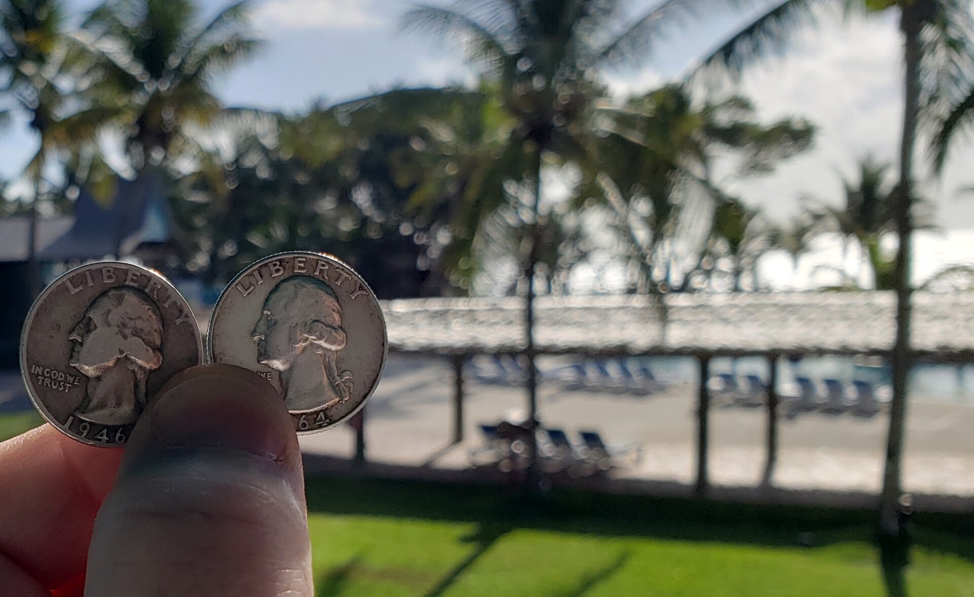 I wonder why ppl were taking such wide berths around me the whole time? There's nothing wrong with a 50 year old man walking around a resort with two silver quarters, taking pictures of them in beautiful, romantic settings, laughing out loud, and talking to himself about how pretty, and shiny they look in the tropics... right?