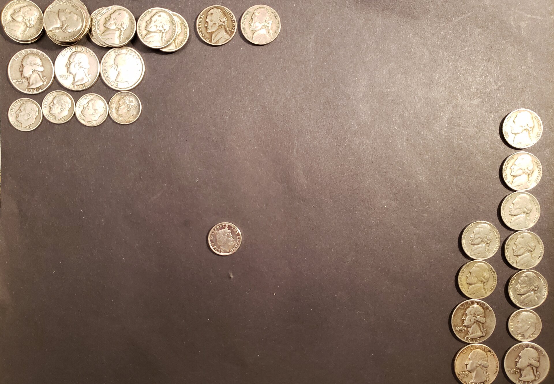 I still had my last weeks stuff out, too lazy to put it away. Made a nice pic though, both weeks total, so far. That's right @potty dollar 1878, five silver quarters (six if you include the Canadian) and five silver dimes, in 2 weeks, lol. And i had two silver nickels that week too (none this week... yet).