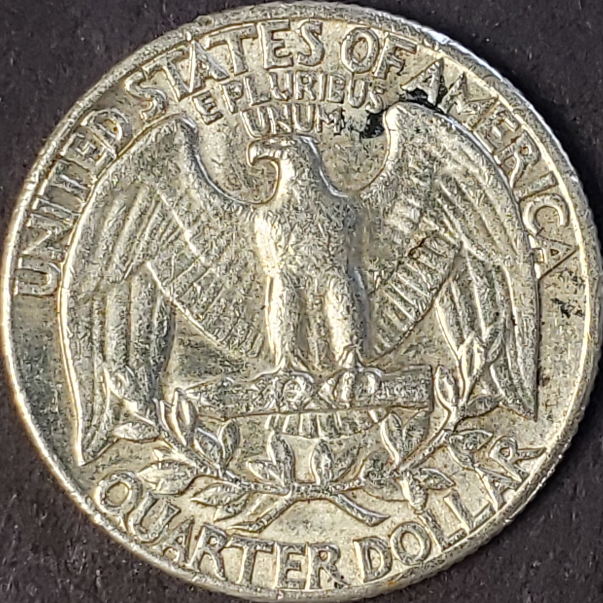 That quarter has a proof die reverse. Notice that there is a distinct space/gap between the E and S of STATES. The proof die reverse is listed as a variety in Cherrypickers for those quarters dated between 1956 and 1964, if I’m not mistaken. (I do not have the book with me at this time). Also, I noticed another example of a proof die reverse in a very early OP post. Very good finds! Dan