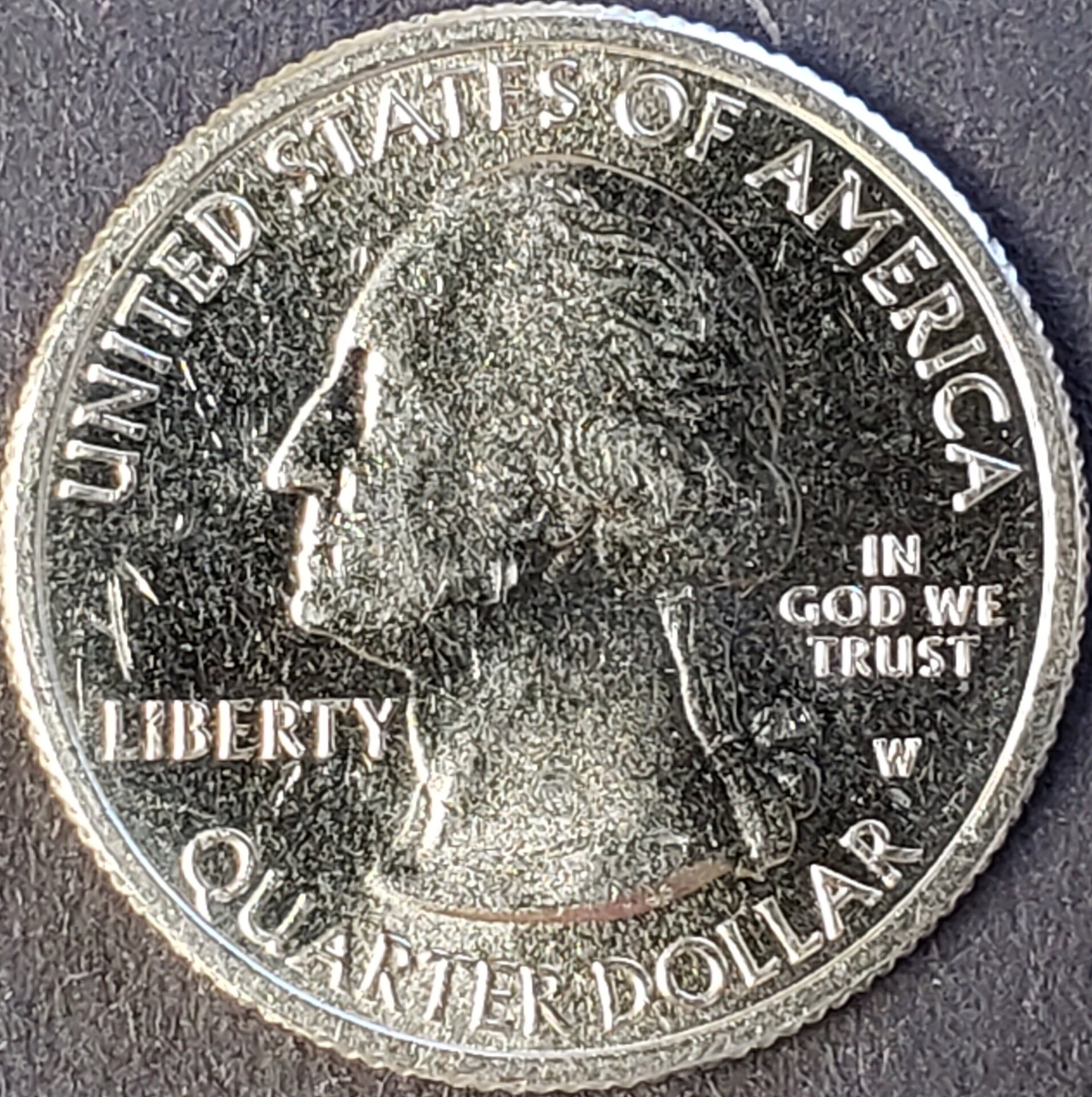 After staring at D and P all day, that W does stand out. Although, when your eyes start to blur, a P on it's side looks strangely like a W, and a D looks almost like an S, lol. Also, look at the W in We. It's the same size as the mint mark. Catches my eye all the time. You may think that because i have a plethora of these Ws, it's easy for me to find them, it's not. Lots of headaches, heavy eye strain, sleepless nights, worry about those coins...