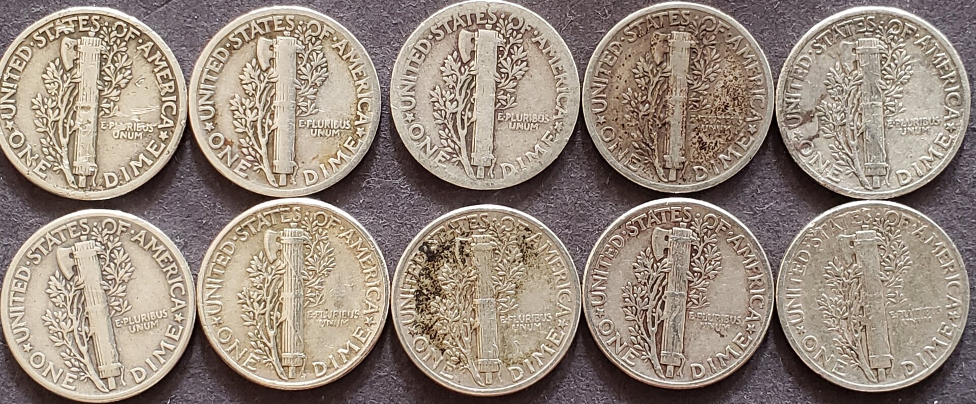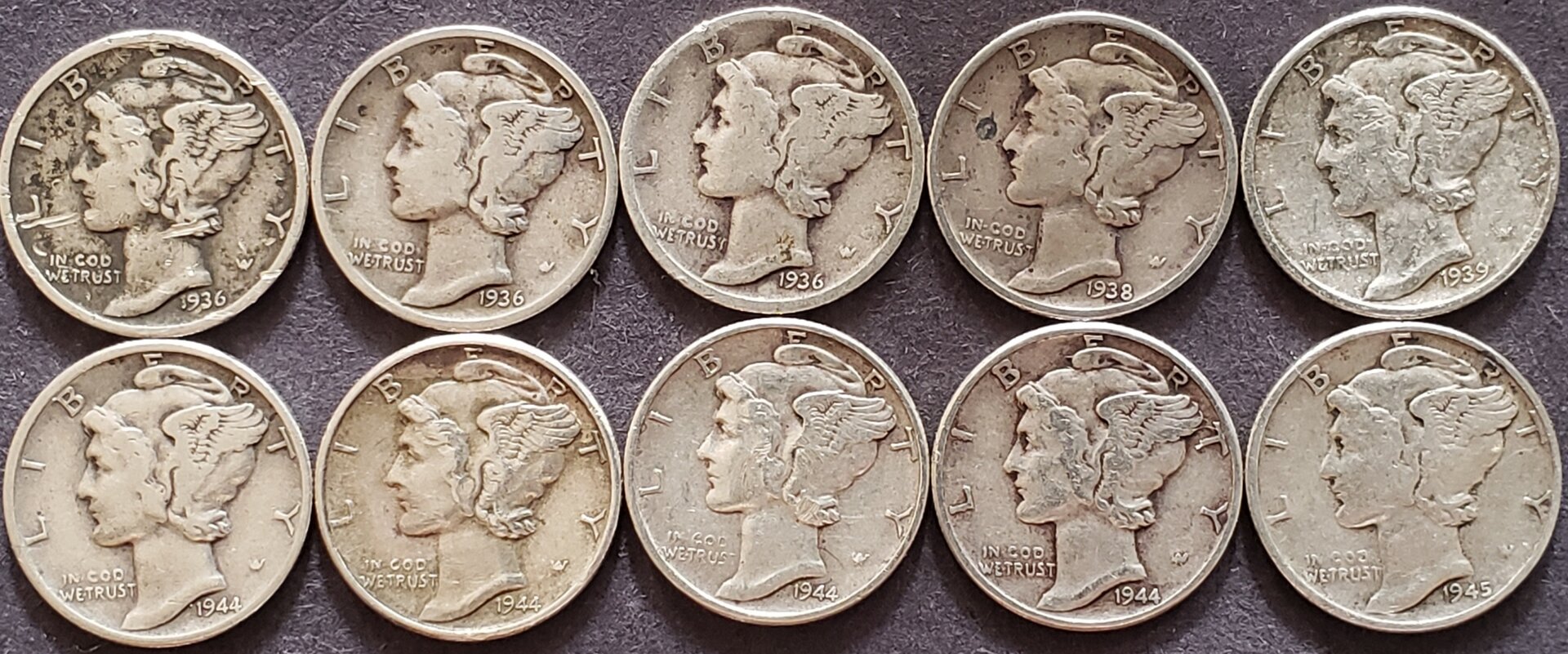 Hey now. Since I'm being forced to take the day off for some guy who opened up some trade routes, or something, i can't find any coins today . But i did find that winged liberty last Monday. So I'm posting all the winged liberties I've found in circulation. It's actually more than i thought. I thought seven or eight, is actually 10. Pretty cool. The LRH corner is the most recent and the first 1945 I've found.