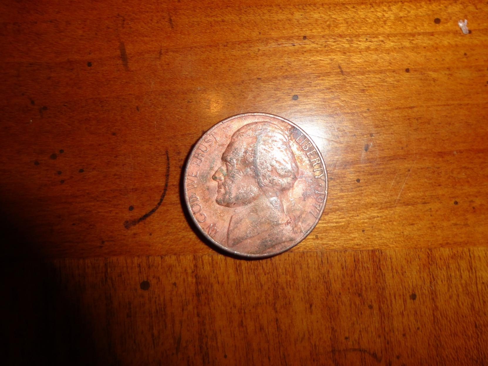 I was searching through a box of nickels and I came across this 1977 nickel that looks like it is copper. Am I just seeing things or is this actually possible?
