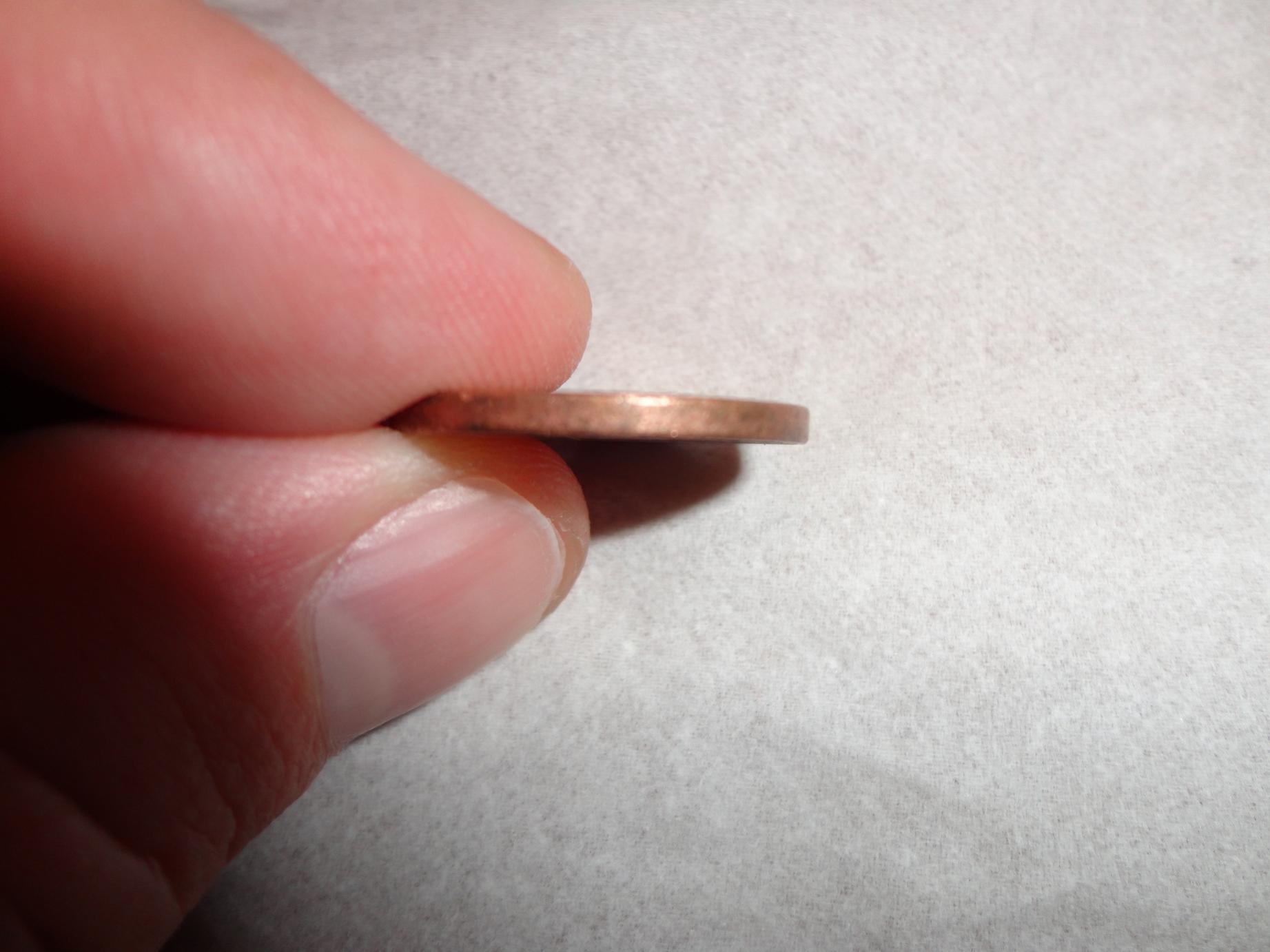 I found an 85 the other day while looking through rolls. I suspected it was either painted or poorly replated so I lighly scraped the edge with a knife and uncovered the original bright, shiney finish. It does infact appear to be painted. you can also see some of the original nickel plating on the reverse where the paint didn't stick well. Bummer