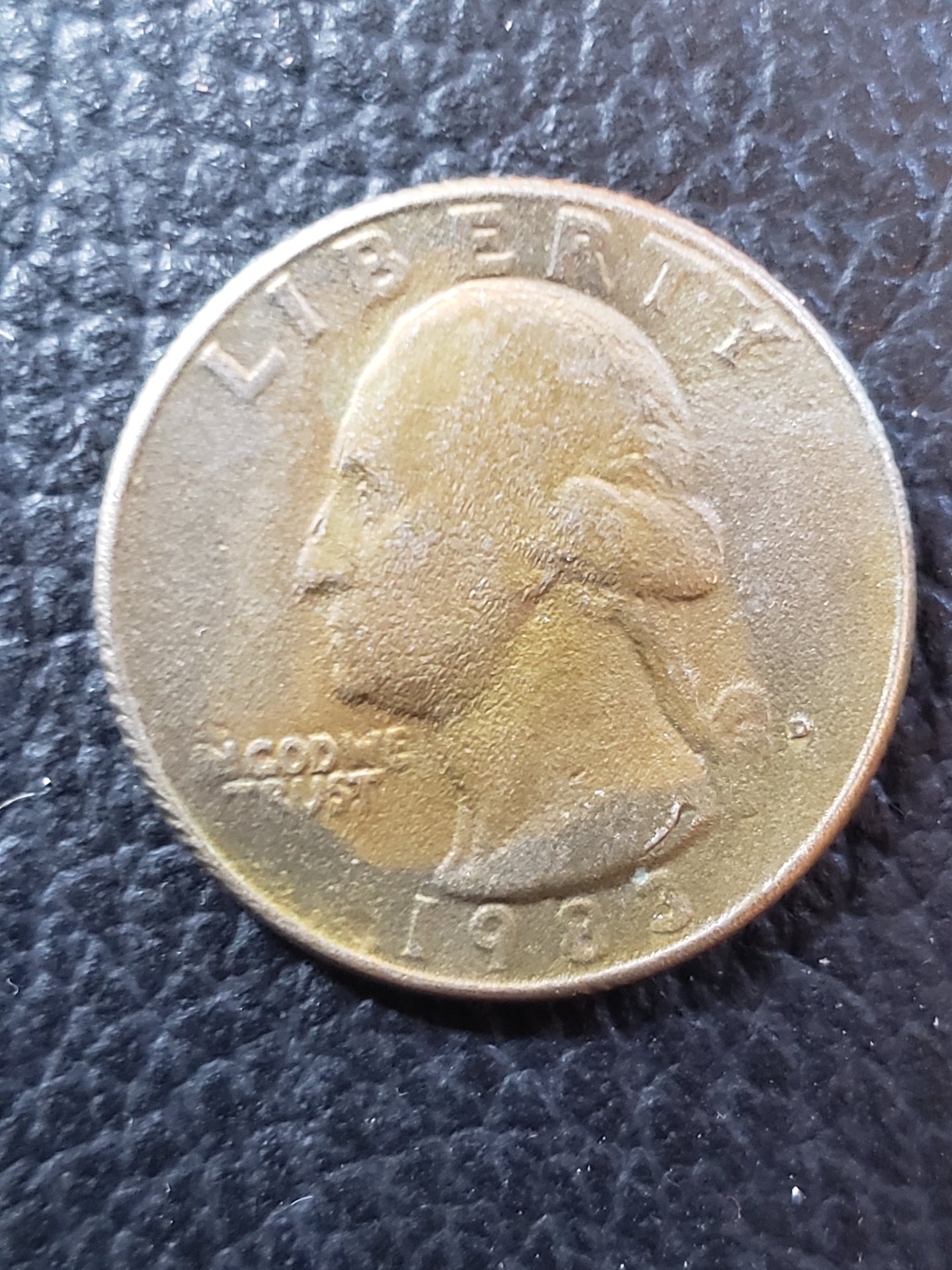 Environmental Damage toning altered the color of the copper that the Cupro-Nickel clad layer contains. Not a Mint Error.
