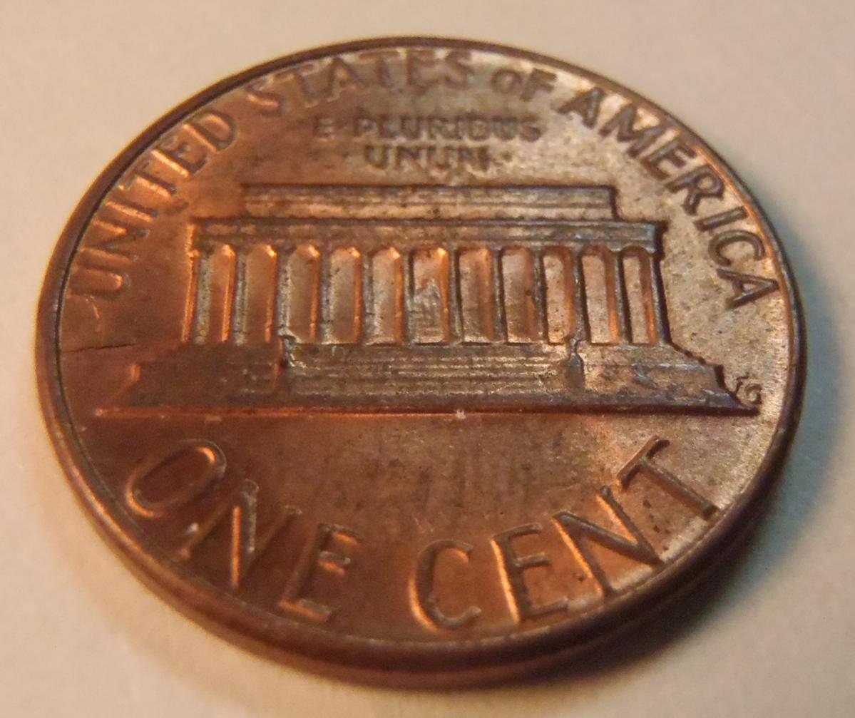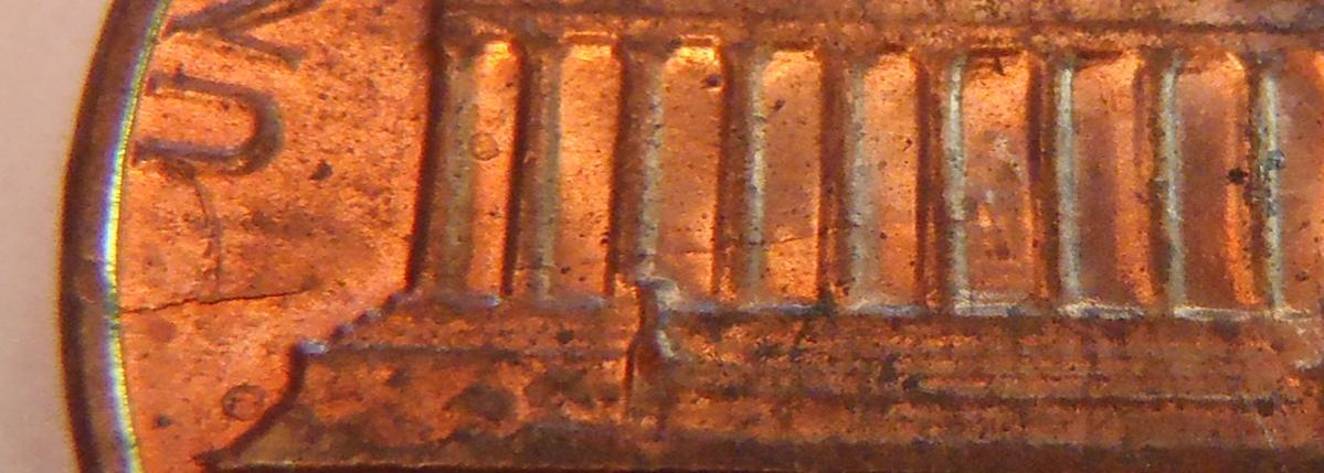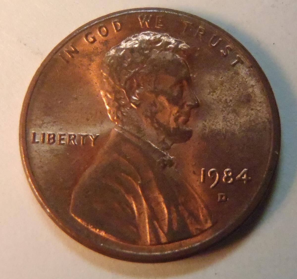 Here is a 1984-D with the reverse having what looks like a thin die break from left of the monument, crossing completely through the monument on an angle and only disappearing just at the bottom bar of the last A in America. It looks most like a die break to me at the beginning on the left, and when in hand, you can see it trailing all the way to the A. It looks like it is one break and not more than one. Has anyone seen one like this before? Anyone want to chime in on this? The first pic is of the obverse, and the remaining pics of the reverse.