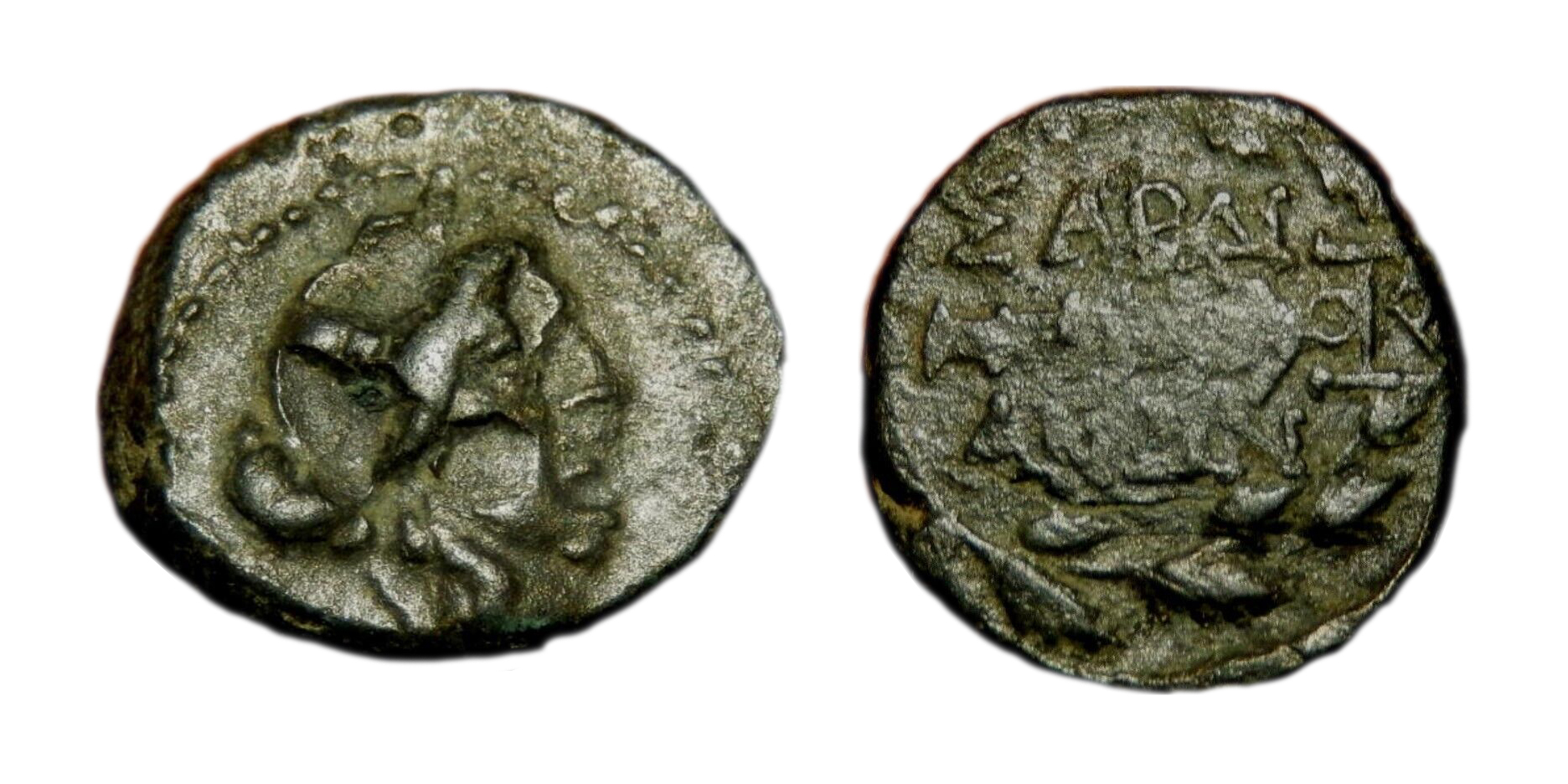 Lydia, Sardes (Apollo / Oak Wreath) coins are rather common so I rarely give them a second look. However these two were so "odd" I had to purchase them. They both have very abnormal depressions on the obverse portrait and an almost molten / melted appearance on the reverse. The coins don't have any indication of bronze disease so I have eliminated that. The abnormalities are smooth and have the same patina as the coin so it appears that they occurred when the coins were manufactured. I believe these coins were cast in moulds and that these abnormalities are due to a mint error; what do you think? Province, City: Lydia, Sardes Denomination: AE 15 Mint: Sardes (133 BC) Obverse: Head of Apollo right Reverse: (ΣΑ)ΡΔΙ-(Α)ΝΩΝ, club, TA monogram, all within oak wreath References: BMCG 22.239.17; SNG Tuebingen 3774; SNG von Aulock 3126; GRPC Lydia 54 Province, City: Lydia, Sardes Denomination: AE 14 Mint: Sardes (133 BC) Obverse: Head of Apollo right Reverse: ΣΑΡΔΙ-ΑΝΩΝ, club, monogram, all within oak wreath References: BMCG 22.239.19; SNG Tuebingen 3774; SNG von Aulock 3126; GRPC Lydia 54