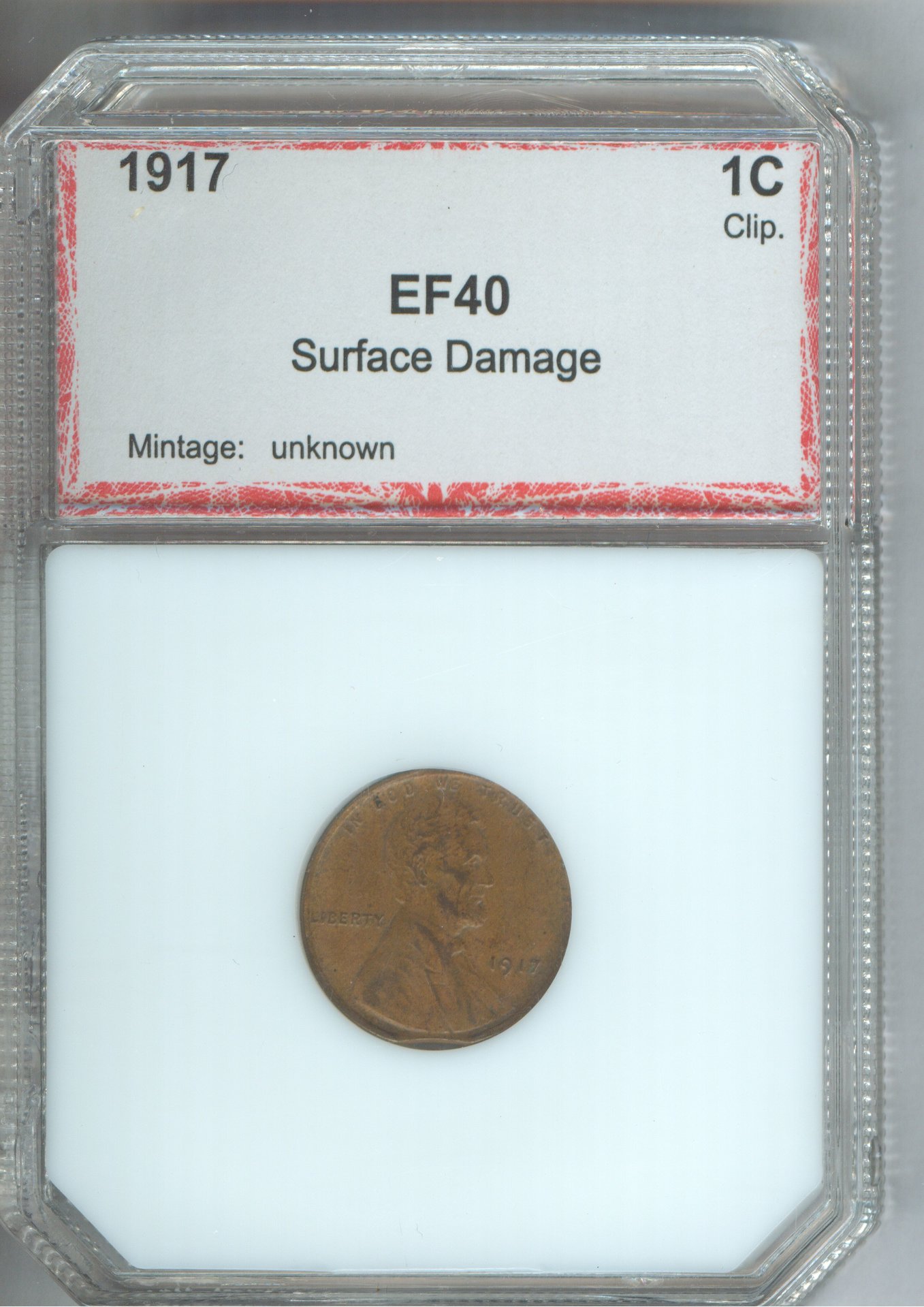 Just fun stuff. It is a joke, the slab that this coin in is old. I have had for a long time. just wanted to show what they would slab back then. First why slab a damaged 1917 cent? It does have a small clip at 6 K, and scratches obv and rev !! may be some one will like for show and tell !