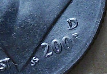 You have to think backwards when looking at strike through, wire or hair will leave an incused mark (indented) on the coin, so a raised area on a coin means a deeper area on the die has occurred, like say a die chip. Rare instances where a wire or other debris will be embedded into a coins surface, but it does happen. The raised area on the "D" means a lower die gouge or something to that effect....also note that the Schuler press can spit out 750 of these coins per minute, they look for quality, but quantity is what they want. By the billions.