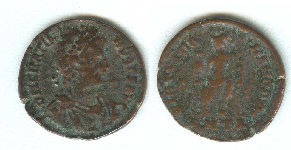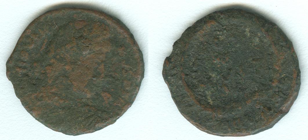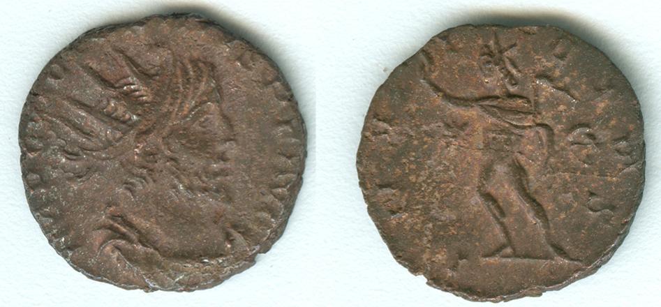 The upper left is a coin from the Roman Emperor Victorinus 269-271 AD. AE antoninianus - RIC 5b, 114 (I think)