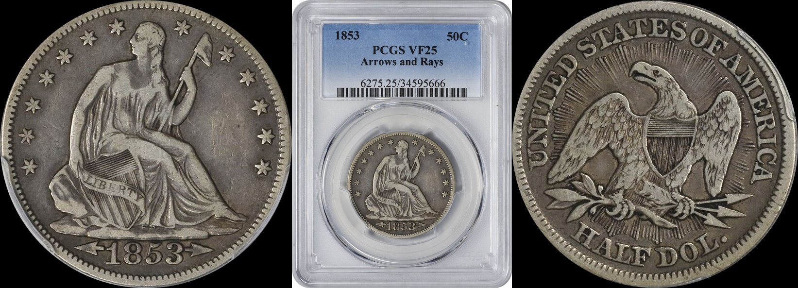 it's a half dollar. 1853 Liberty Seated Half Dollar VF25 PCGS Arrows and Rays 3-horz.jpg