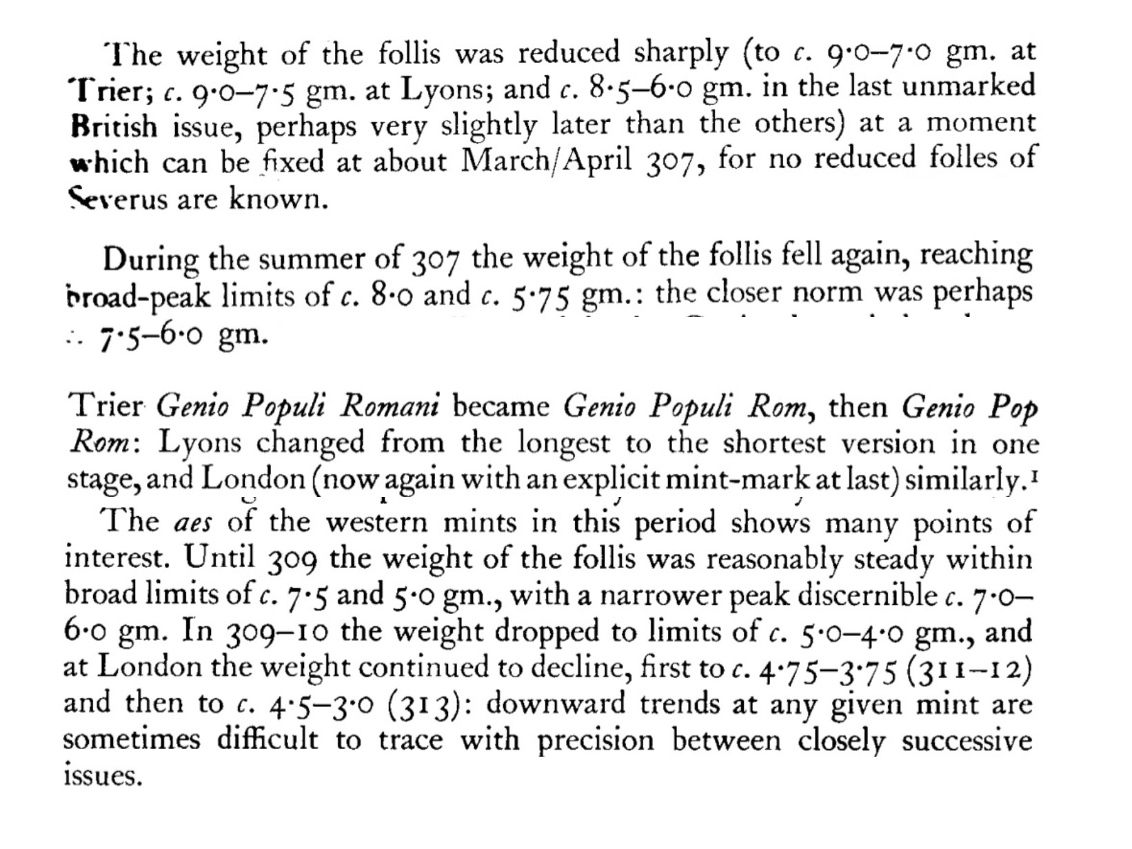 Here are some snippets from RIC describing successive weight changes at the western mints. Cloke & Toone give a much more detailed account of the London changes in their book.
