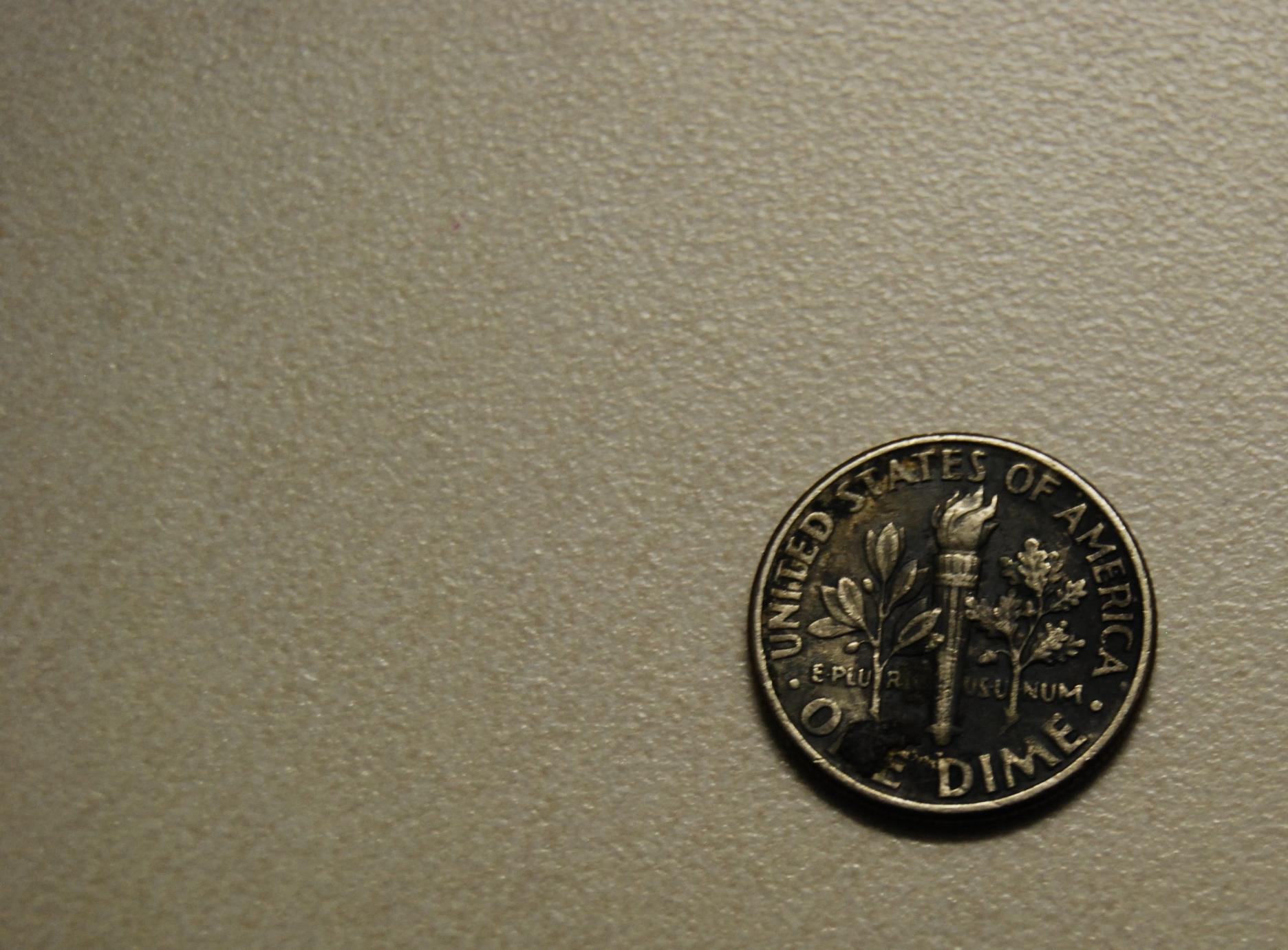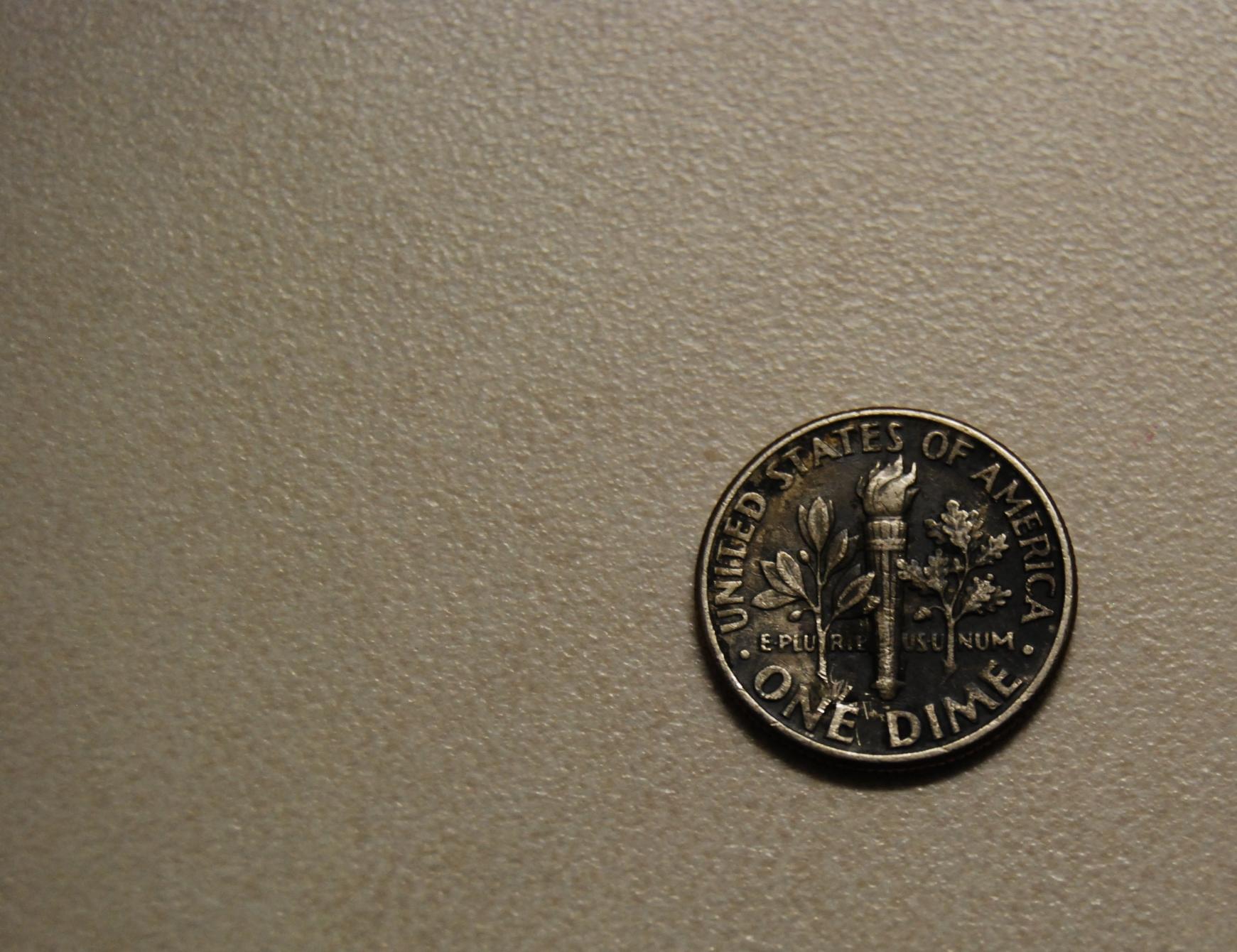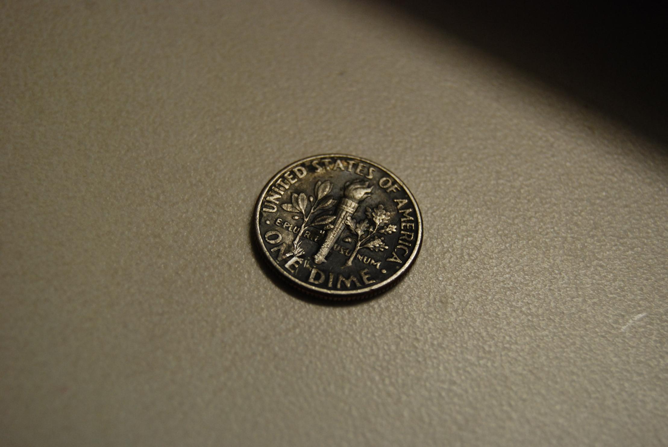 The depression on the reverse that is pushing that out on the obverse is located between the E Plu in E Pluribus and the O in One.