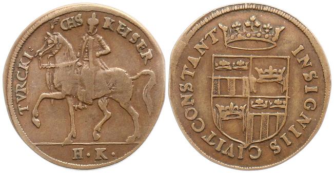 This coin is being sold as a "Turkish" Rechenpfennig (a contradiction in itself), and, aside from the word TVRCKI on the obverse there is nothing Turkish about it. Anybody have an idea what it is. I'd guess 18th century, and since it says KEISER, probably Austrian, but I can't find it in the standard catalog (though it's hard to look when you don't even know what country its from).