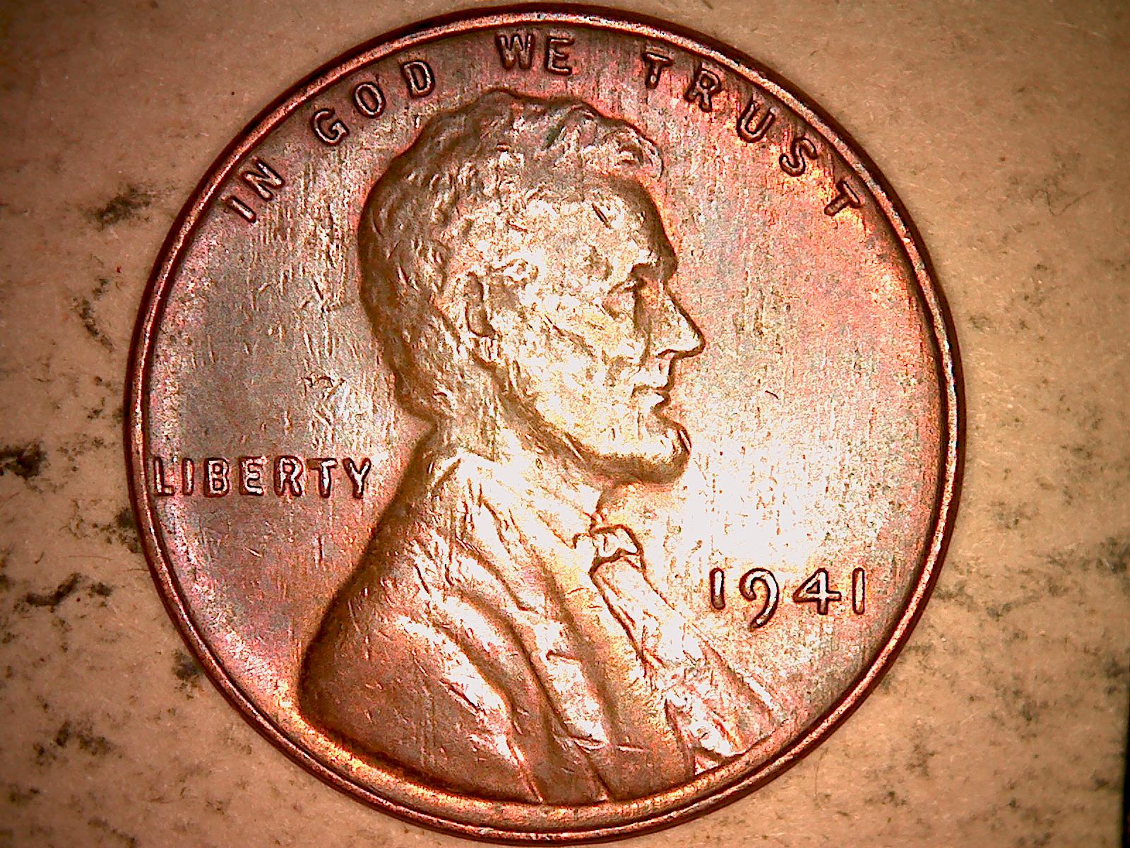 There's no "plating" on a 1941 penny. It's been treated with a chemical, maybe buffed with a strong abrasive.