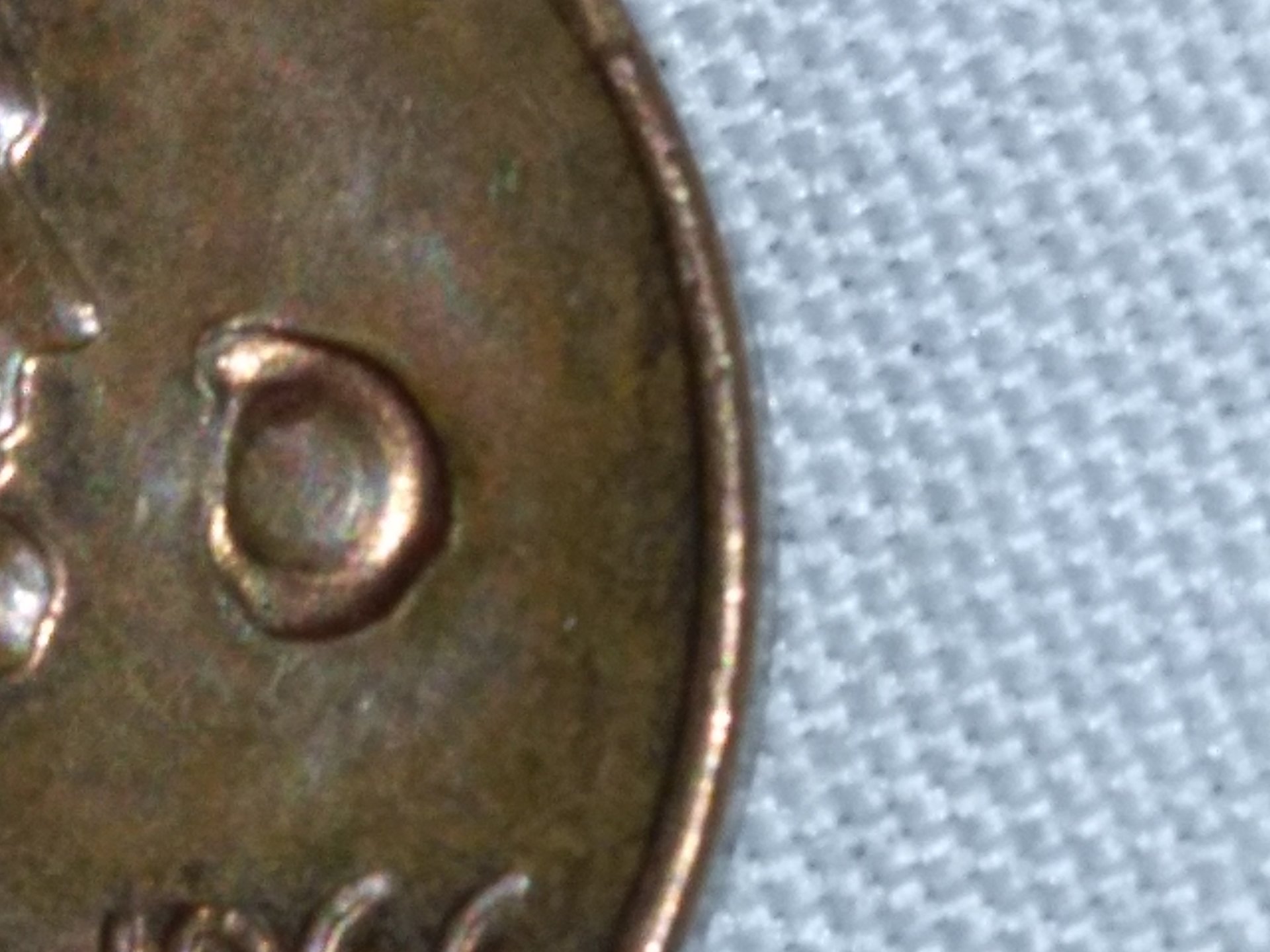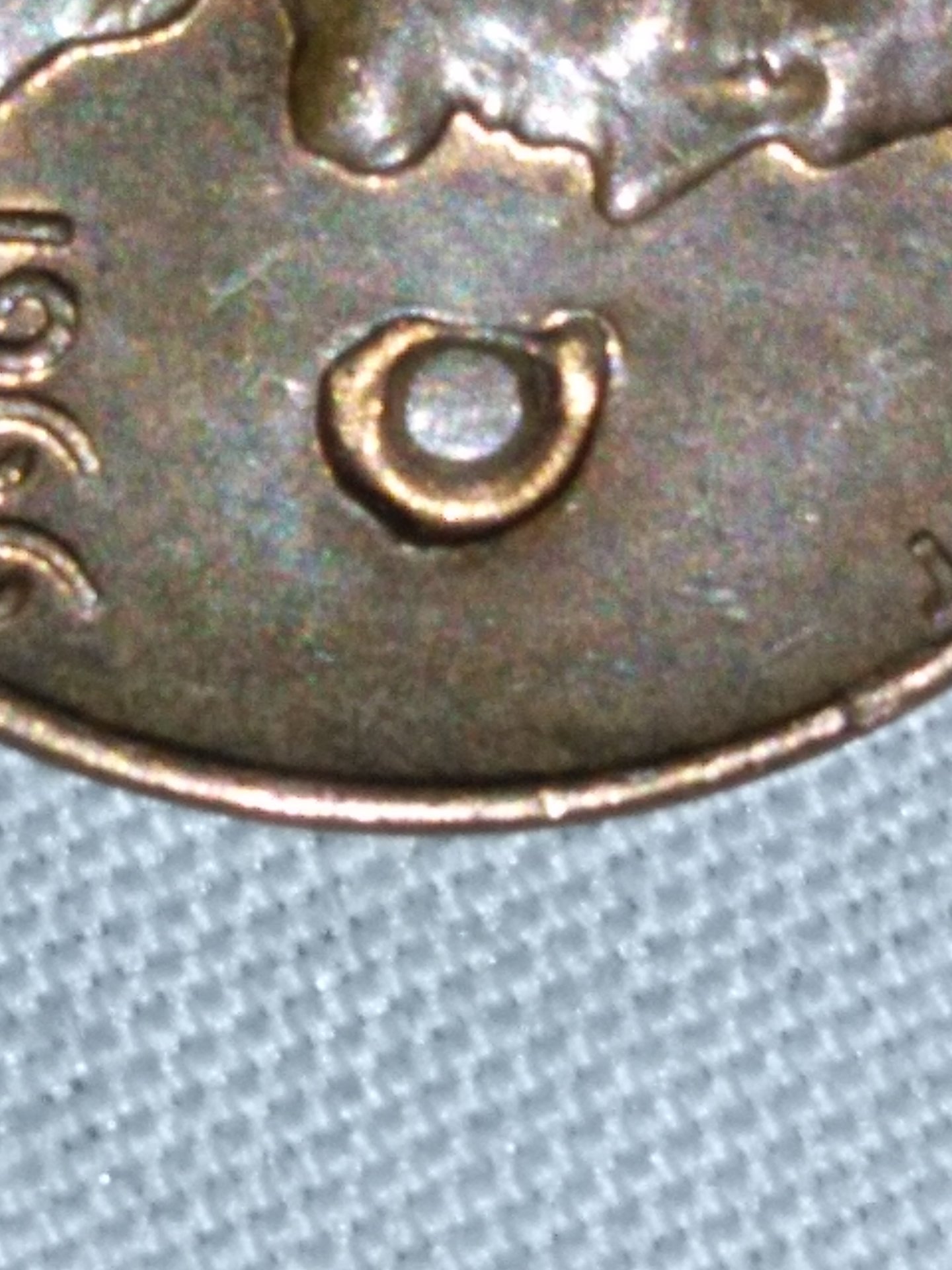 Welcome to Coin Talk. Can you post a photo of the entire reverse? Thank you. Maybe someone tried to punch a hole in it. Experts will chime in.