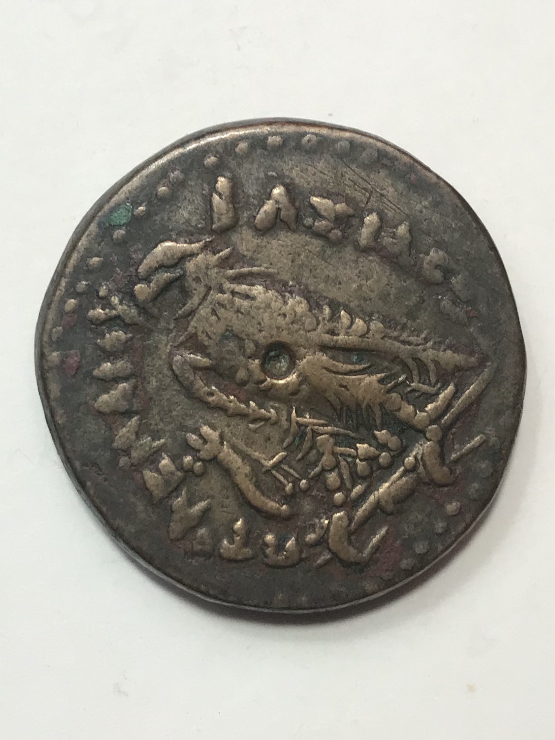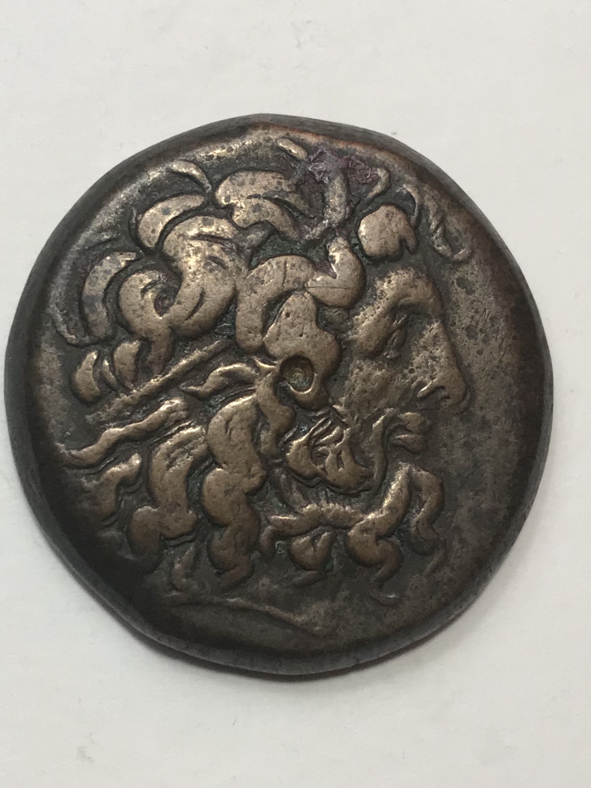 As lordmarcovan said, it is an Egyptian bronze coin from the Ptolemaic (Macedonian) period (one of Cleopatra's ancestors). And like Justin says, a weight (in grams) and diameter (in mm) is helpful - these tended to run in series with the same designs, the denomination determined by size. This website gives an overview of types, etc. To figure yours out, note yours has a single eagle on the reverse (tails) side with a filleted cornucopiae in the left field. http://ptolemybronze.com/ptolemy_series.html Whatever the size, that is a nice one. My grandma gave me a silver dollar, which was nice, but I wish she'd had a Ptolemaic bronze in that shoebox as well! Welcome to CT.