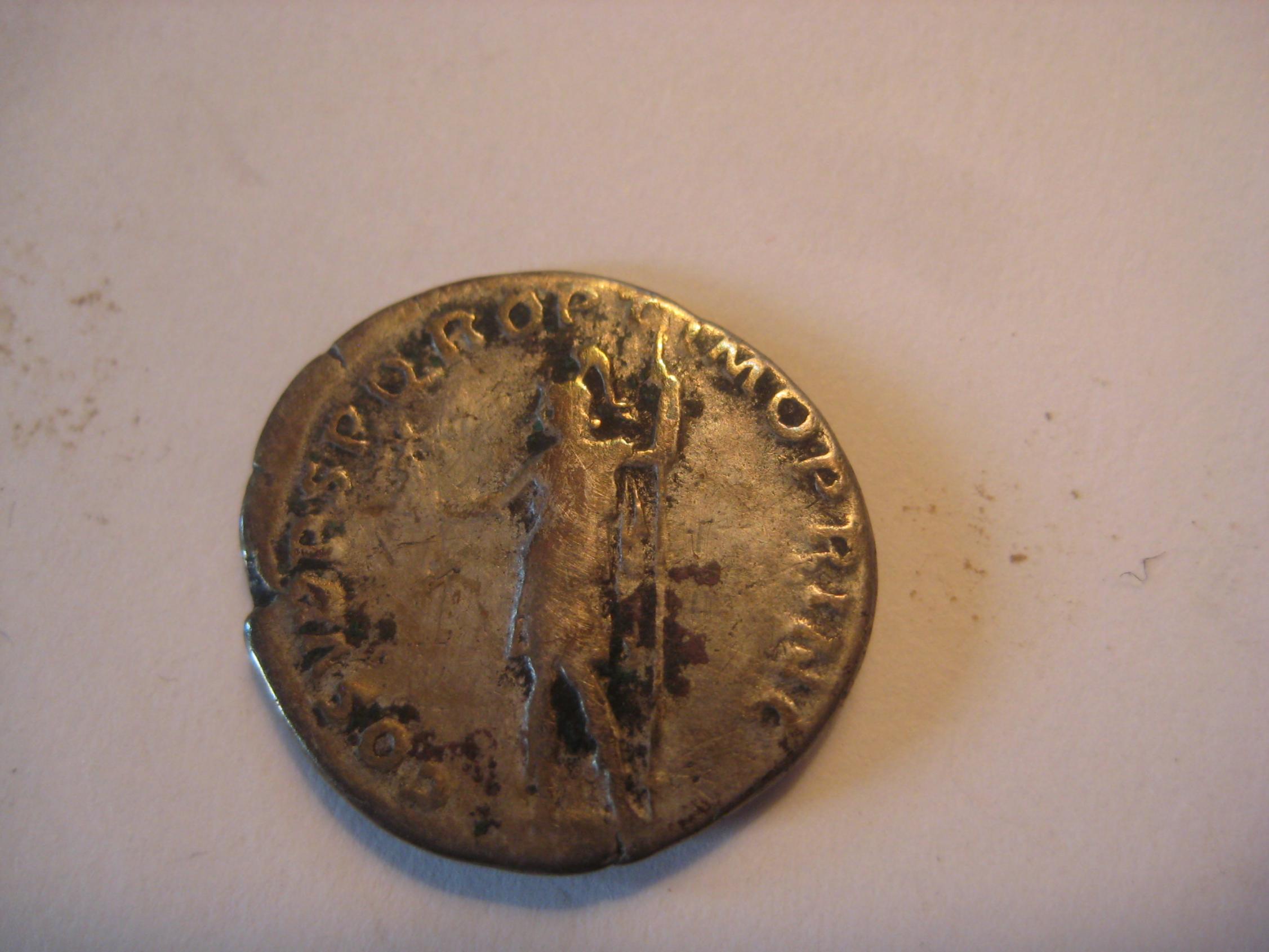 The first is a denarius of Trajan (reigned AD 98-117): Obverse: IMP TRAIANO AVG GER DAC P M TR P, laureate head r., drapery on l. shoulder Reverse: COS V P P S P Q R OPTIMO PRINC, Roma standing l., holding Victory and spear RIC 115 The latter coin is an antoninianus (worth 2 denarii, but by this point, successive debasement had removed almost all of the silver content) of Victorinus or maybe Tetricus I (I'm having trouble reading the obverse legend to confirm), and it's from the Gallic Empire in the mid third century AD. The reverse reads "SALVS AVG," and depicts the goddess Salus standing right, holding patera, feeding serpent in arms.