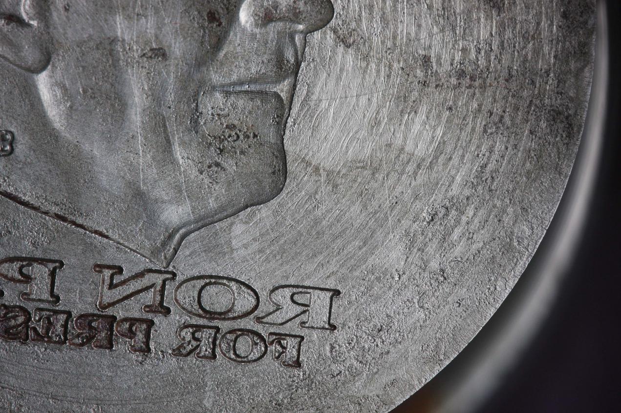 Hey gang! Have you ever seen a coin with lathe lines? A lathe line is a series of circular marks that are made when a die is made. They are usually eliminated when the die is finished (or polished) for use. You can visit this site and see examples: http://www.errorvariety.com/Lathe-lines/index.html Or see this coin: Here is an unfinished NORFED Ron Paul obverse die I purchased recently. It has been properly canceled... but you can clearly see the lathe lines on the surface of the unpolished die. The finishing process usually eliminates these lines... but sometimes if the are not finished properly before use the lines will appear on the coins.